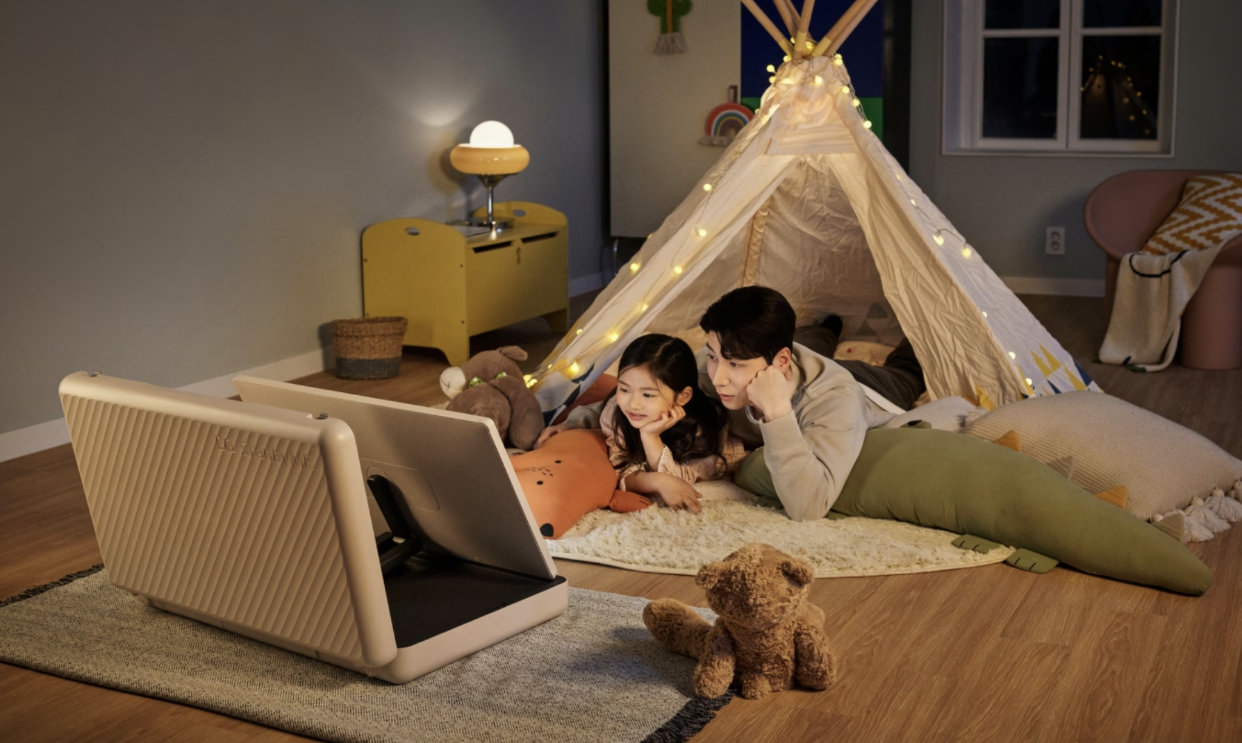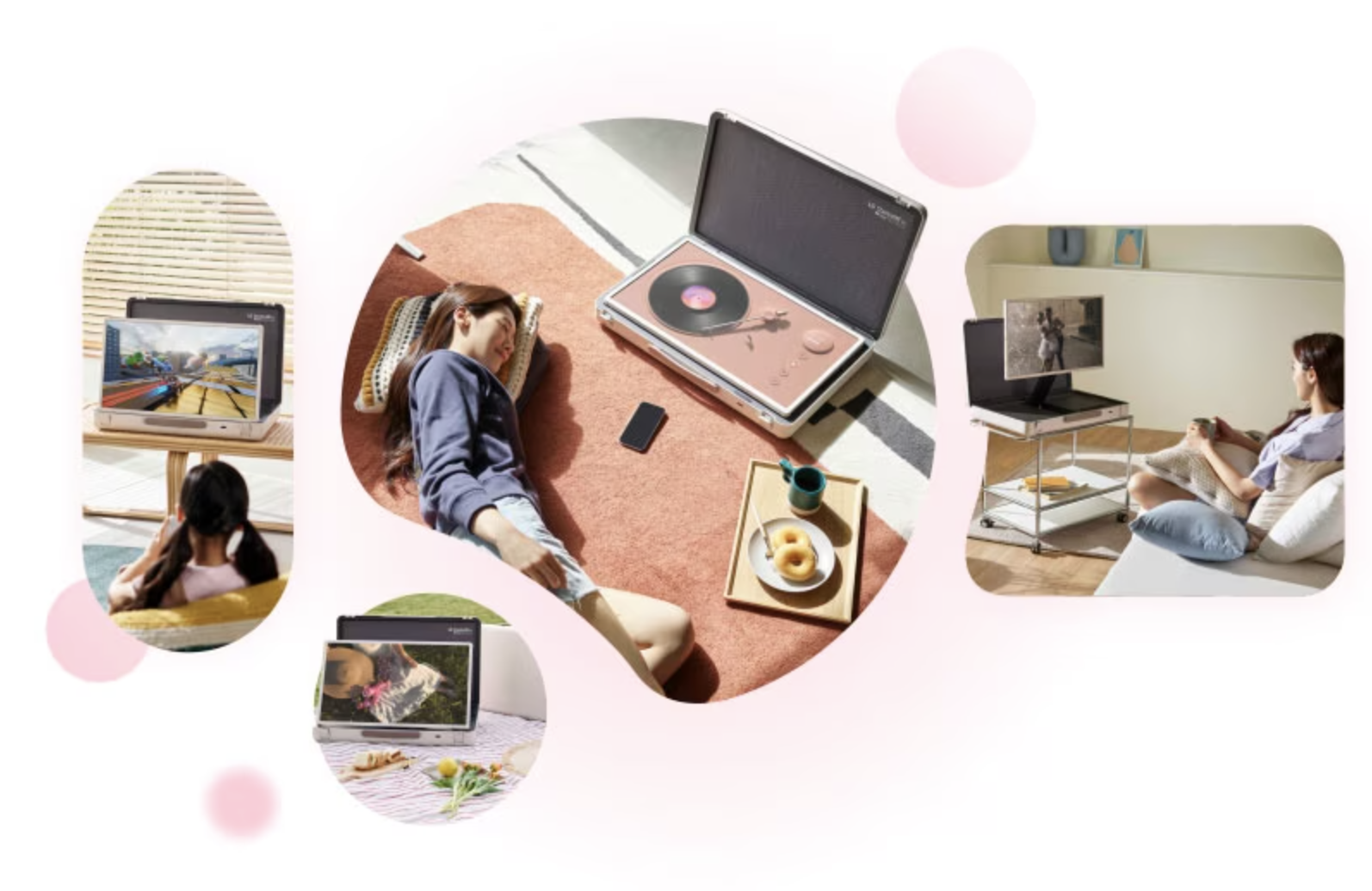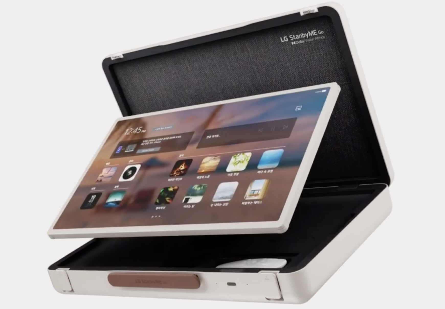 LG 스탠바이미 GO는 단순히 TV를 안에 넣은게 아닌 태블릿PC 처럼 케이스를 열면 자동으로 화면이 켜지고 케이스를 닫으면 화면이 꺼지는 장치가 탑재되어 있습니다.