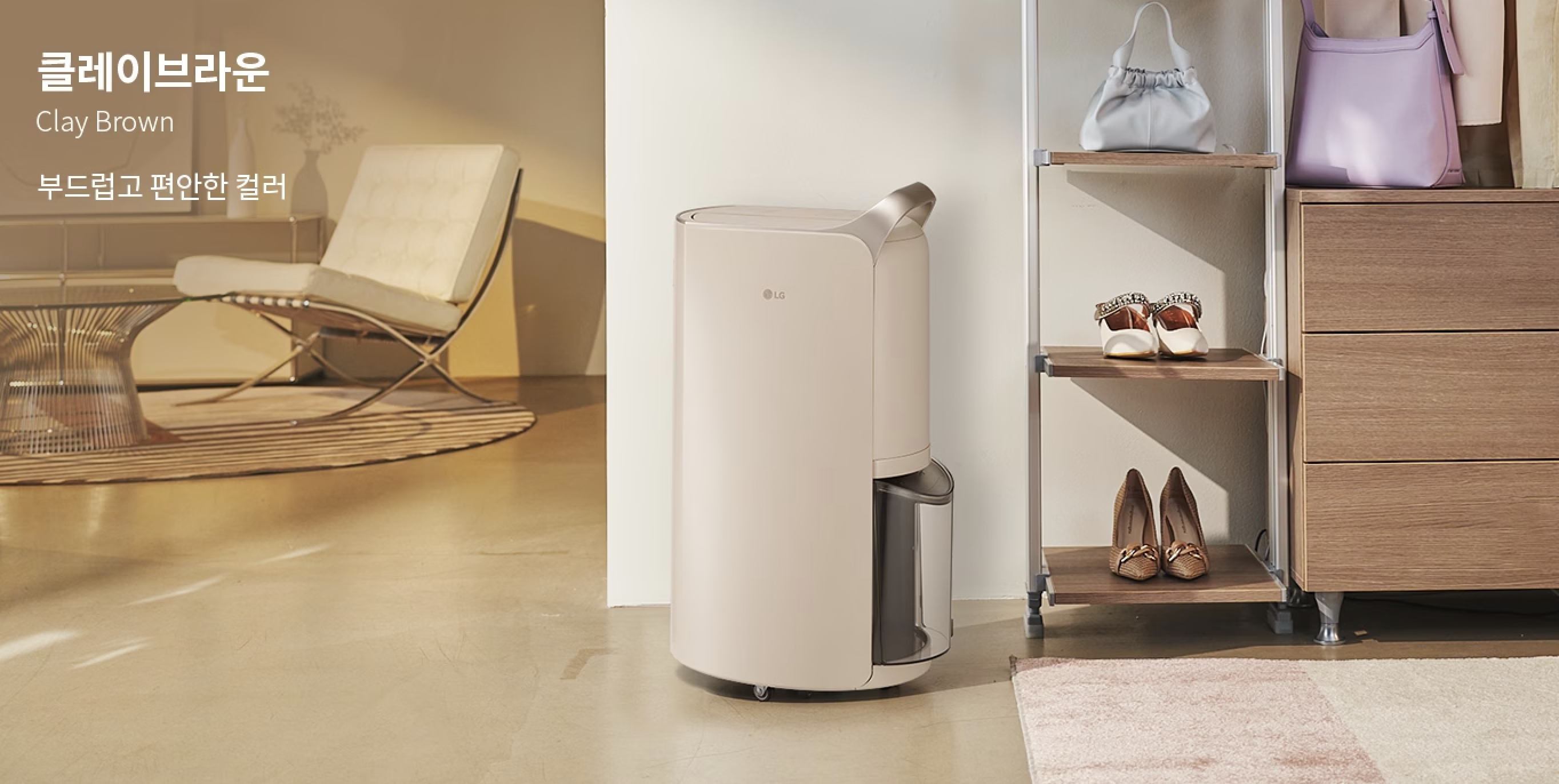2023년 LG전자 제습기는 전문가가 엄선한 오브제컬렉션 컬러인 카밍 베이지, 클레이 브라운을 적용해 인테리어 효과를 극대화 했습니다.
