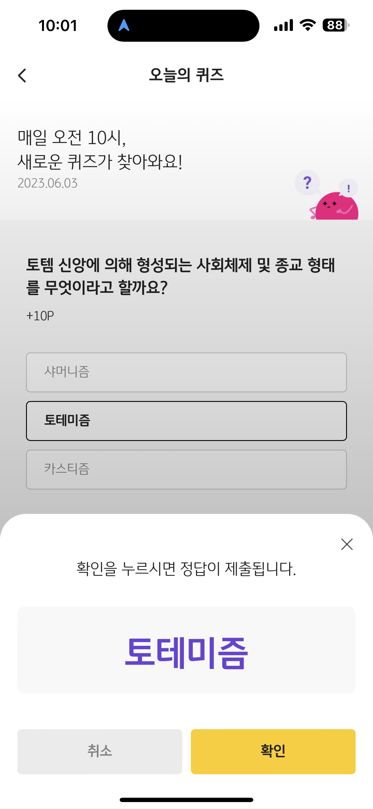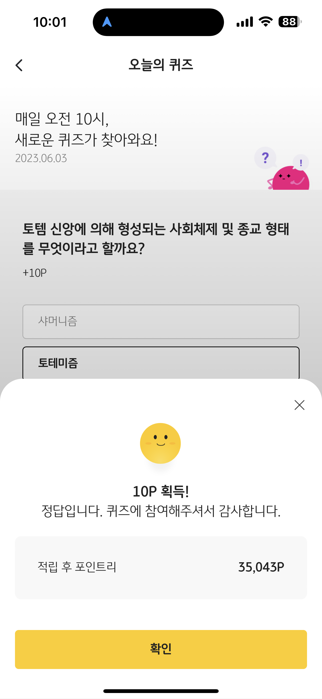 KB Pay 오늘의 퀴즈 정답은 토테미즘 입니다