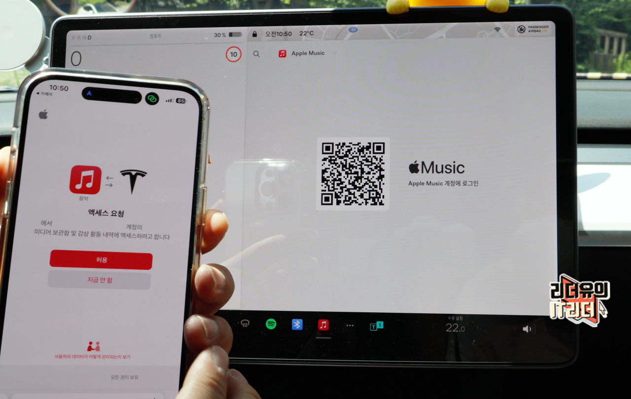 테슬라 모델Y 최신 업데이트를 하면 애플뮤직 음악앱이 추가되었고 선택을 하면 QR코드로 애플뮤직 로그인을 할 수 있게 지원하고 있습니다.