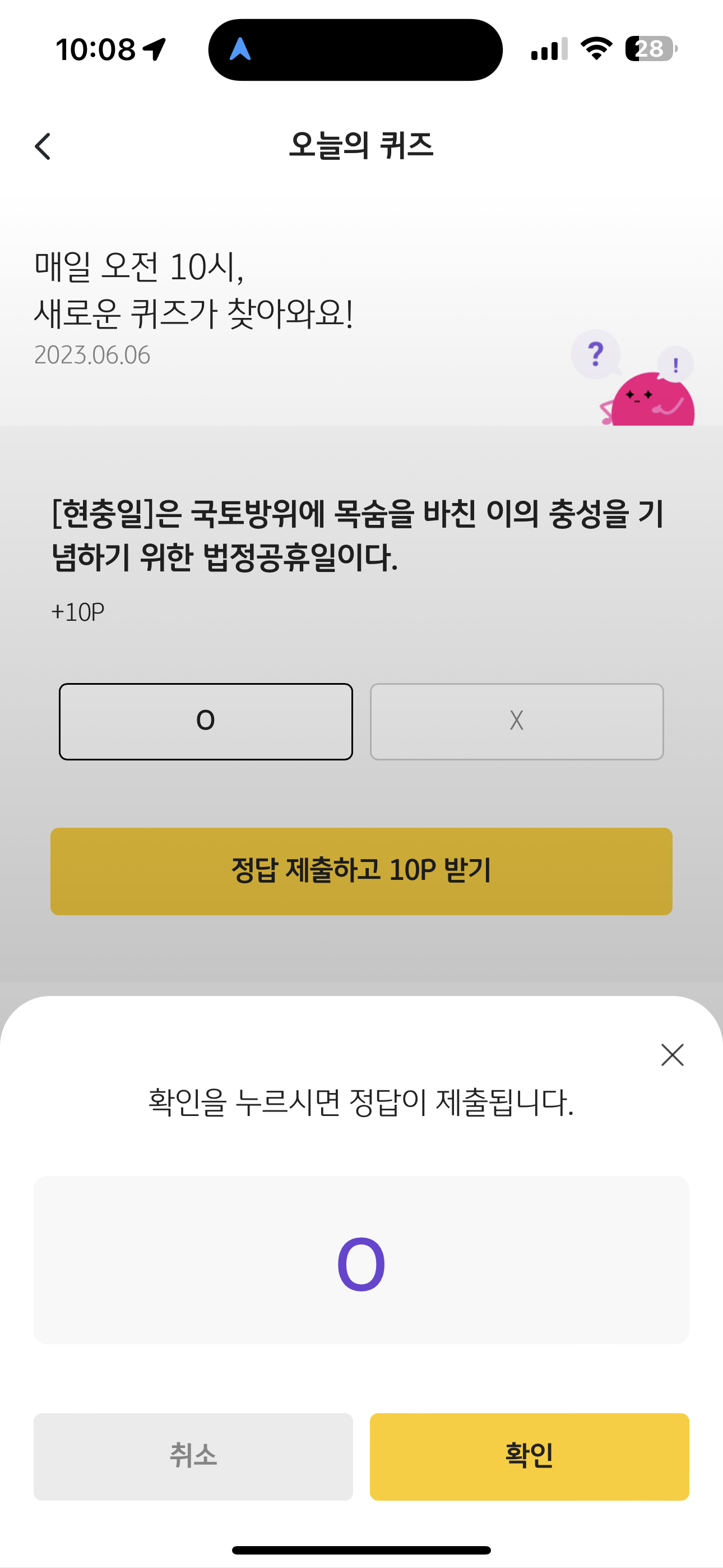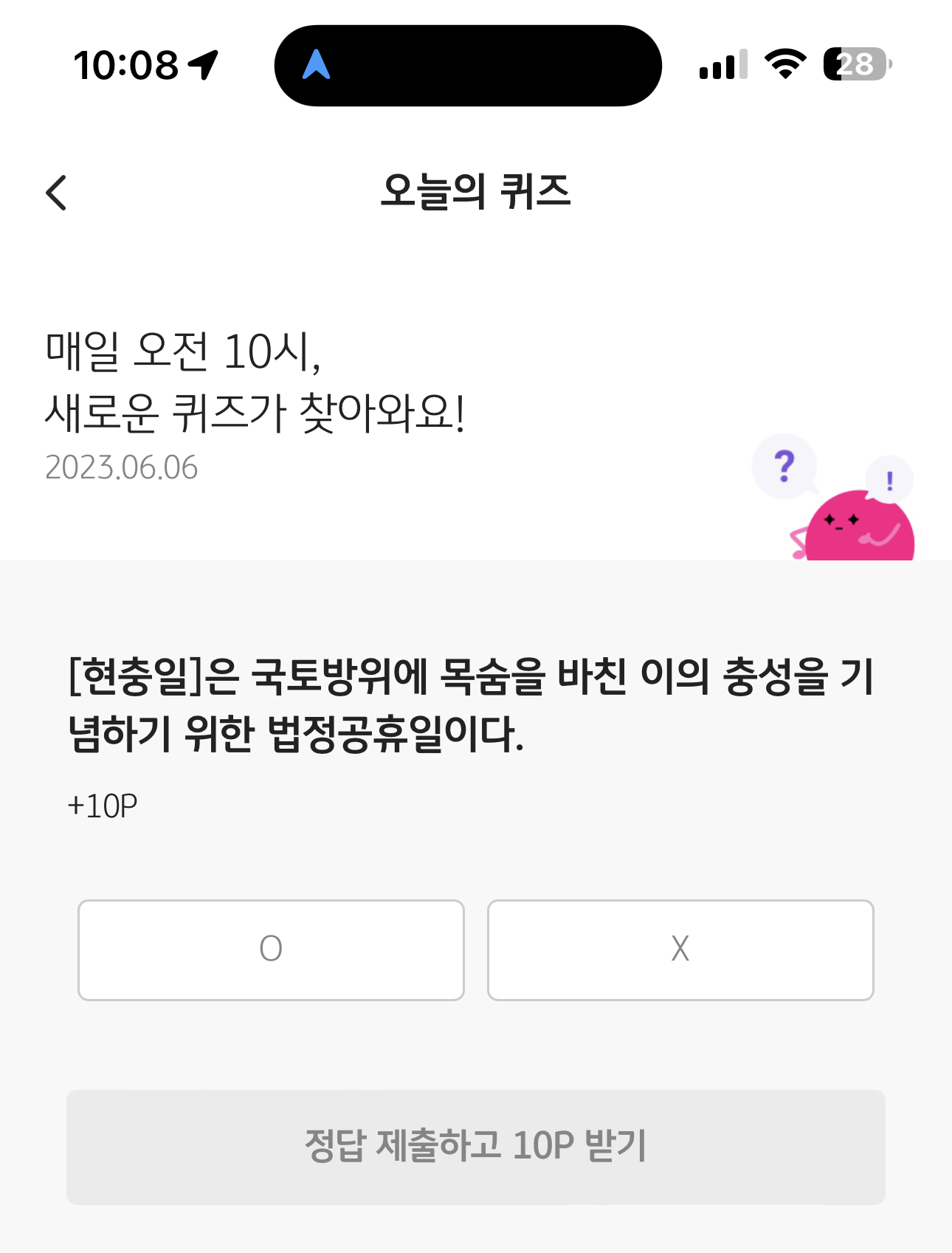 KB Pay 오늘의 퀴즈 6월 6일 정답(현충일은 국토방위에 목숨을 바친 이의 충성을 기념하기 위한 법정공휴일이다)