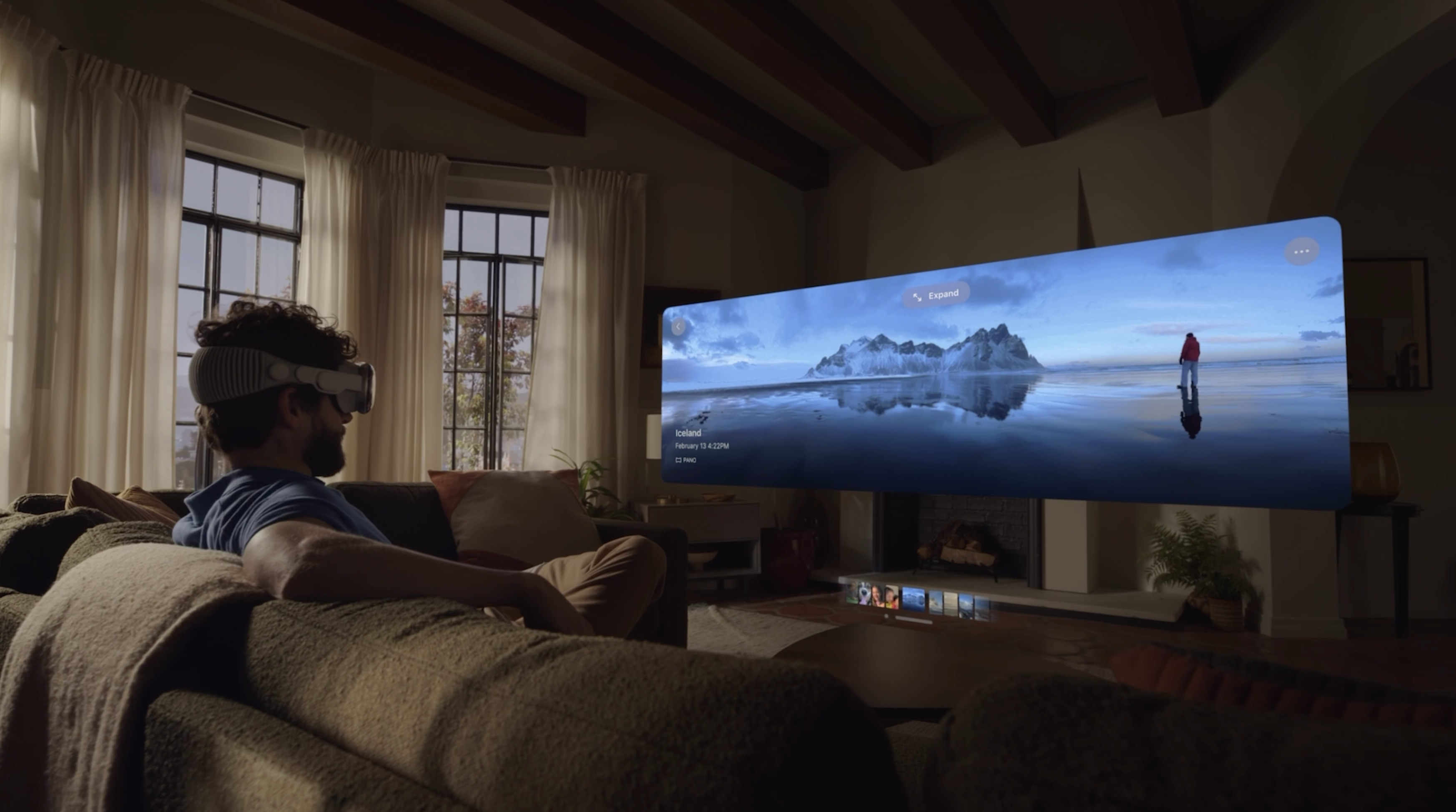 애플 비전 프로는 애플 최초로 3D 카메라를 탑재했습니다. 사용자가 공간 음향을 통해 가장 소중한 순간을 포착하고 몰입할 수 있게 해주는데요. 모든 공간 사진 및 동영상을 통해 그 순간을 더욱 생생하게 만날 수 있게 했습니다. 그리고 사진 보관함에 접속해 사진과 영상을 미세한 디테일까지 보여주는 선명한 색상의 실물 크기로 체험할 수 있습니다.
