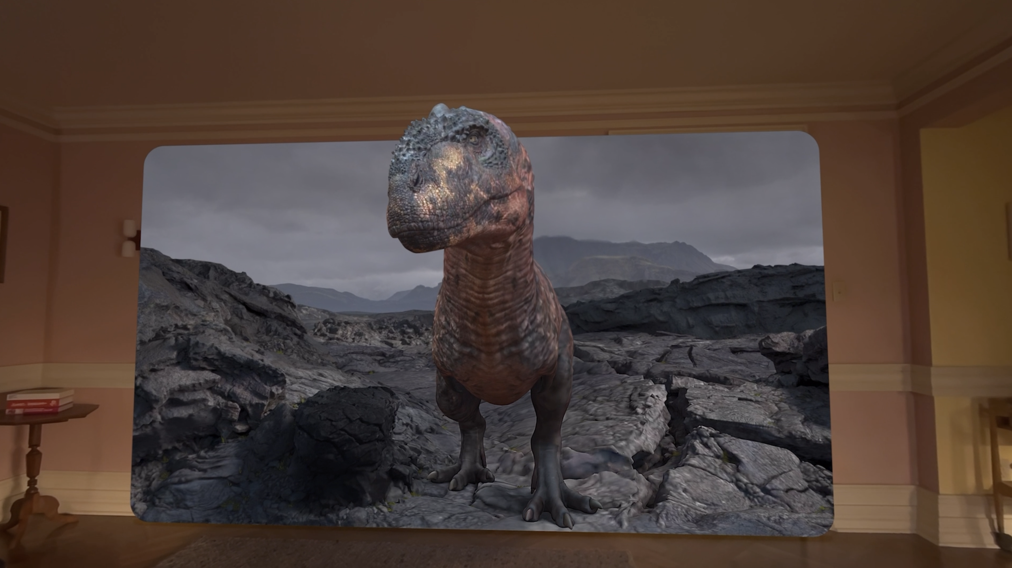 애플 비전 프로는 공간 컴퓨팅이라는 새로운 환경에 맞게 visionOS로 완전히 새로운 3D 인터페이스를 가지고 있습니다. 자연광에 동적으로 반응하며 그림자도 드리워 사용자가 공간의 크기감과 거리감을 느낄 수 있게 했습니다. 그리고 눈과 손, 음성으로 제어 가능한 새로운 입력 체계를 도입했습니다. 시선을 고정하거나 움직여 앱을 브라우징하고 두 손가락을 맞대어 꼬집듯이 앱을 선택하고 손목을 위아래로 까닥여 스크롤하거나 목소리로 지시를 할 수 있습니다.