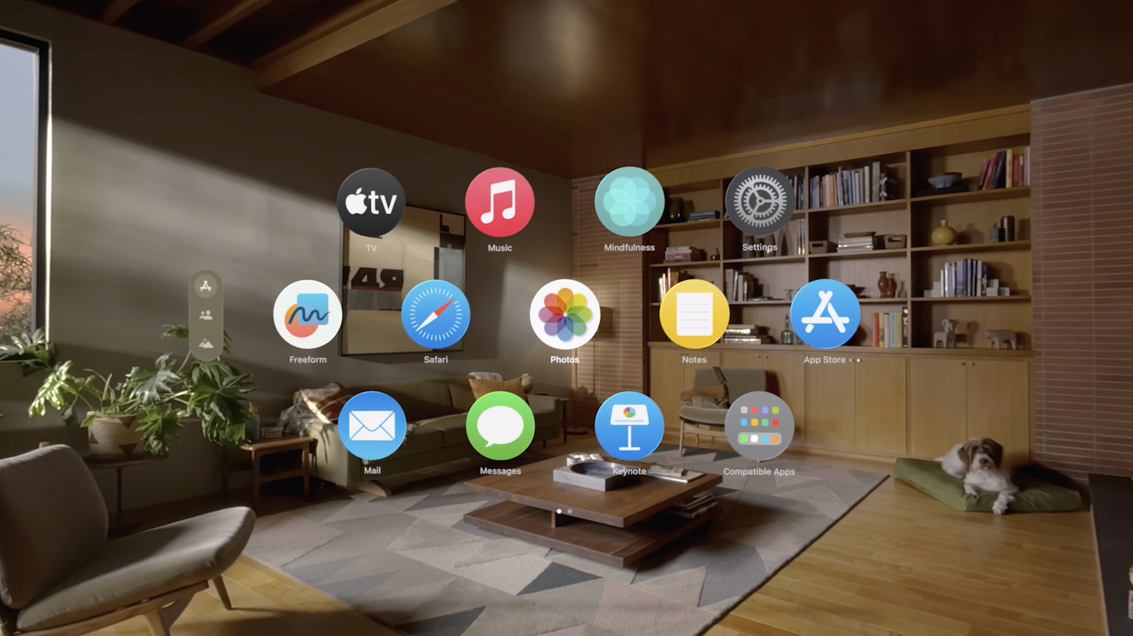 애플 MR 헤드셋 비전 프로는 눈에 보이는 모든 영역이 캔버스가 될 수 있습니다. 앱을 실행하고 여러개의 화면을 배치하고 확대, 축소를 하고 안경 속 모든 공간이 캔버스가 됩니다. 그리고 이에 맞게 새로운 visionOS를 준비했고 3D 인터페이스를 통해 감각적인 화면을 보여주고 있습니다.