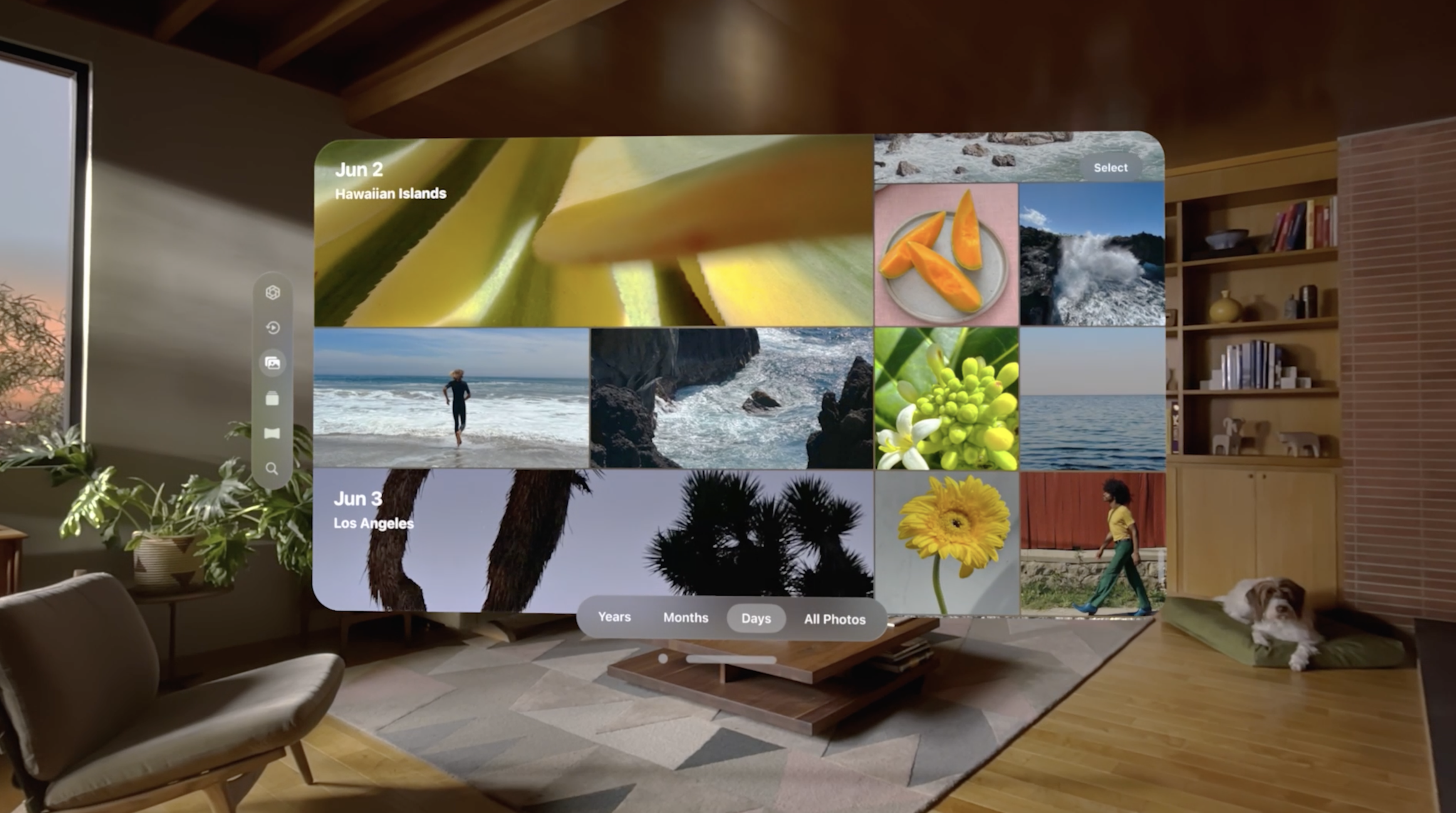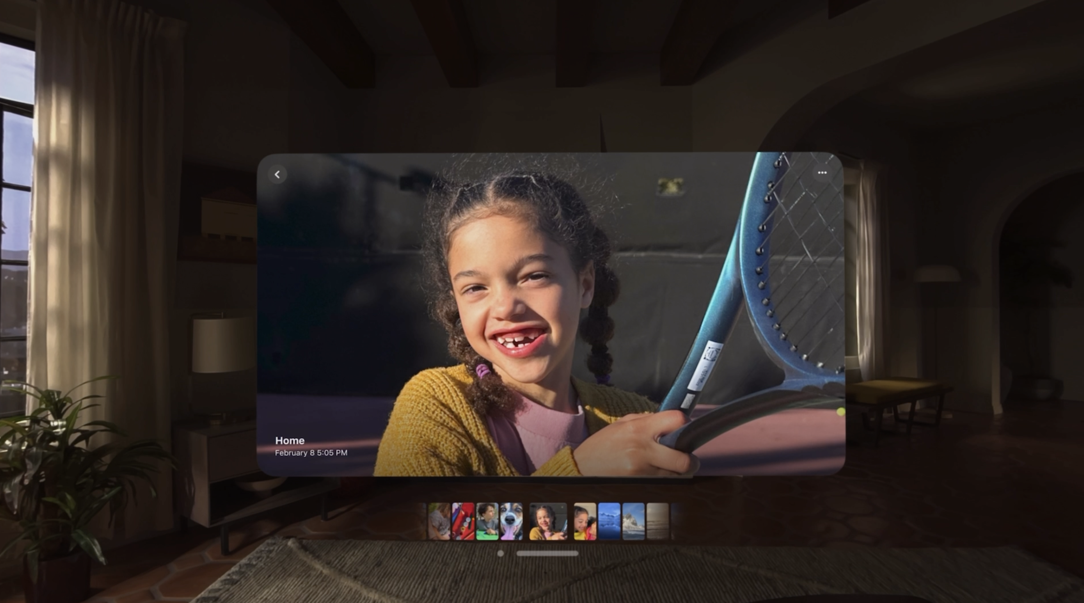 애플 비전 프로는 애플 최초로 3D 카메라를 탑재했습니다. 사용자가 공간 음향을 통해 가장 소중한 순간을 포착하고 몰입할 수 있게 해주는데요. 모든 공간 사진 및 동영상을 통해 그 순간을 더욱 생생하게 만날 수 있게 했습니다. 그리고 사진 보관함에 접속해 사진과 영상을 미세한 디테일까지 보여주는 선명한 색상의 실물 크기로 체험할 수 있습니다.