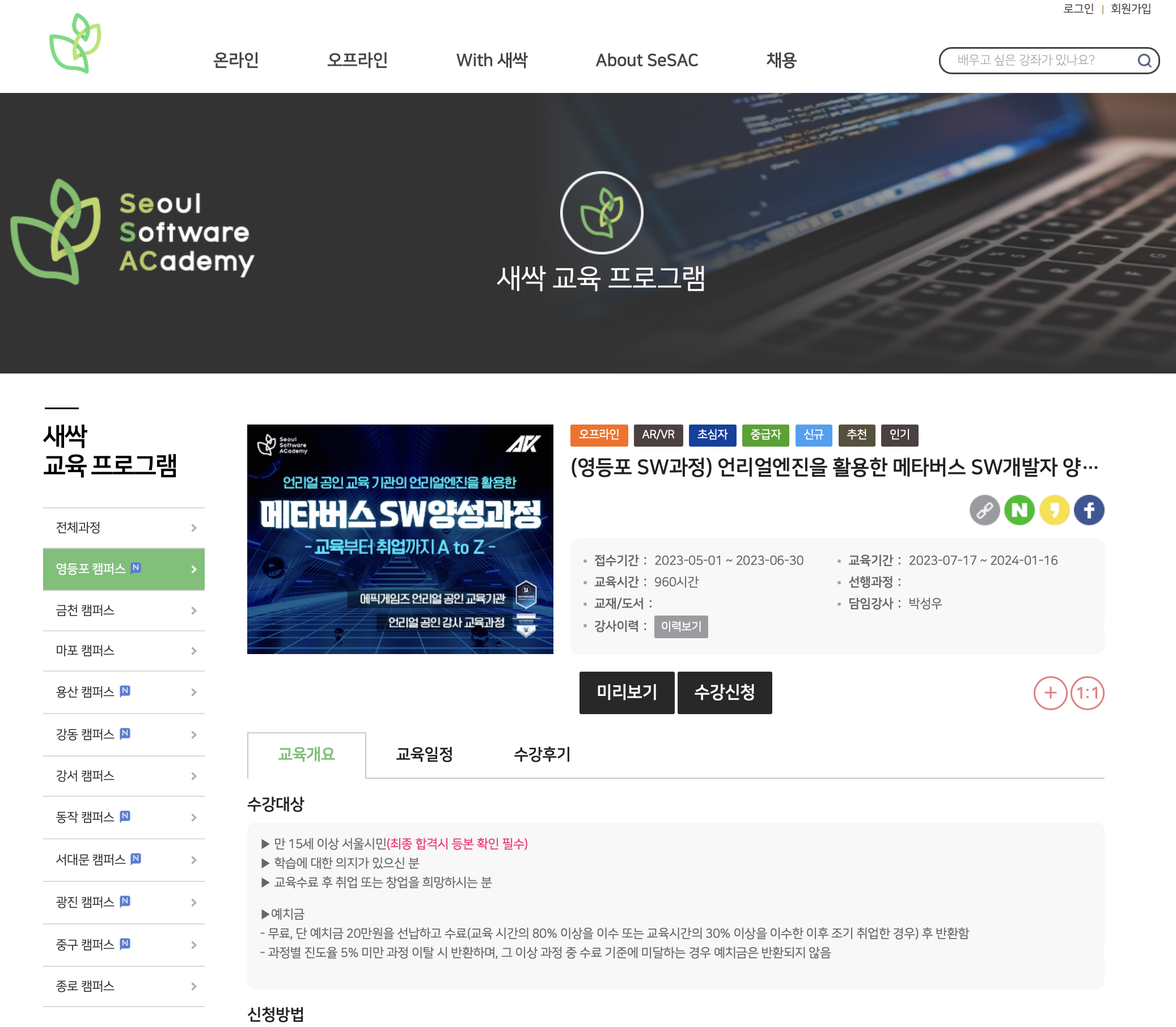 메타버스 SW 개발자 양성과정 영등포 캠퍼스 진행