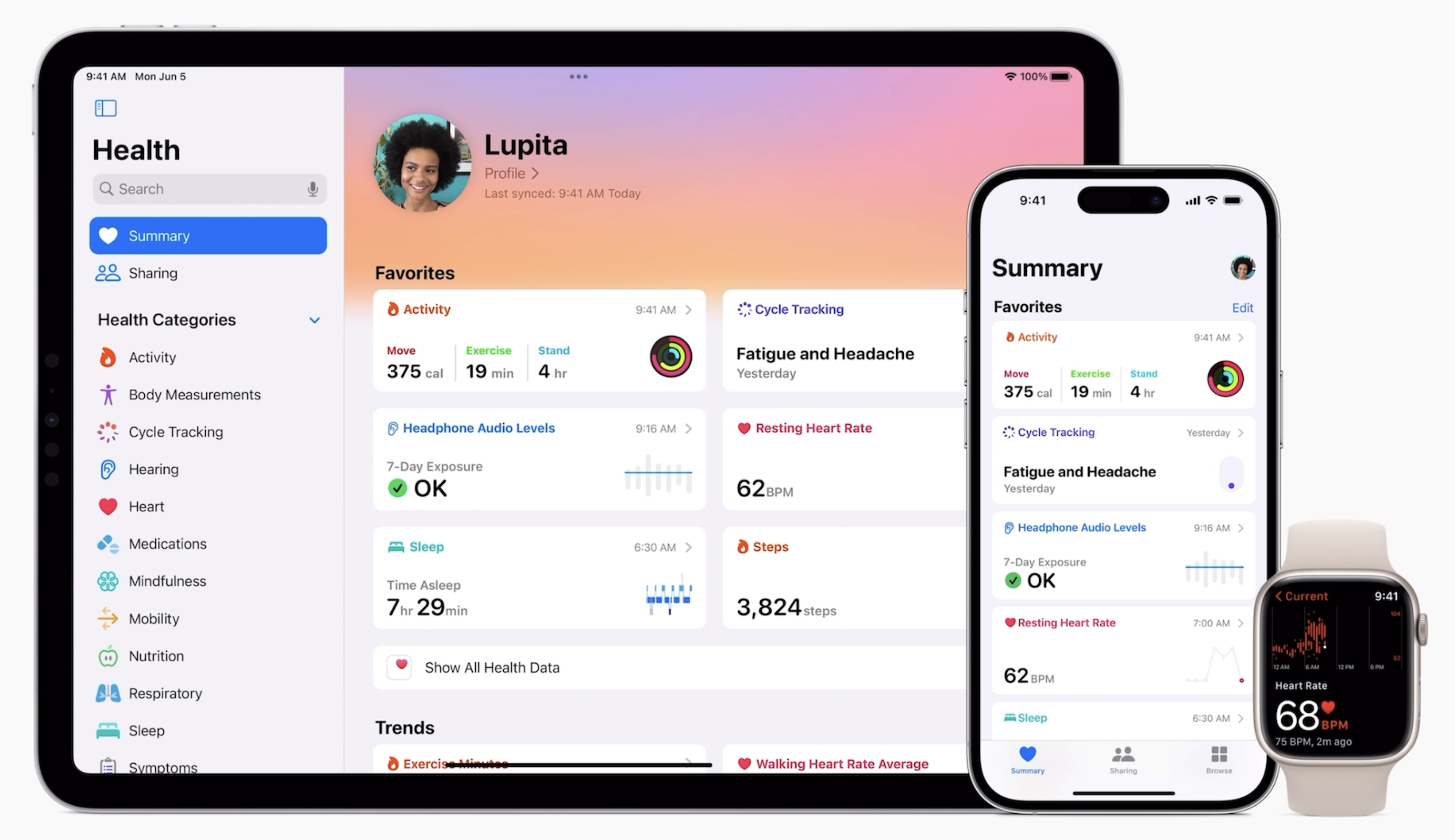 아이패드 iPadOS17에서는 건강 앱이 지원됩니다. 기존에는 아이폰만 가능해서 아쉬웠는데요. 이제 아이패드에서 대화면으로 건강 데이터를 관리할 수 있어 더욱 보기가 좋아졌습니다. 추세, 하이라이트, 상세한 인터랙티브 차트를 통해 건강 데이터에 대한 정보를 습득할 수 있습니다. 그리고 순간의 감정과 그날의 기분을 기록하고 여러 기관의 건강 기록을 확인하는 등 건강 관련 정보를 아이패드에서도 효과적으로 사용할 수 있습니다.