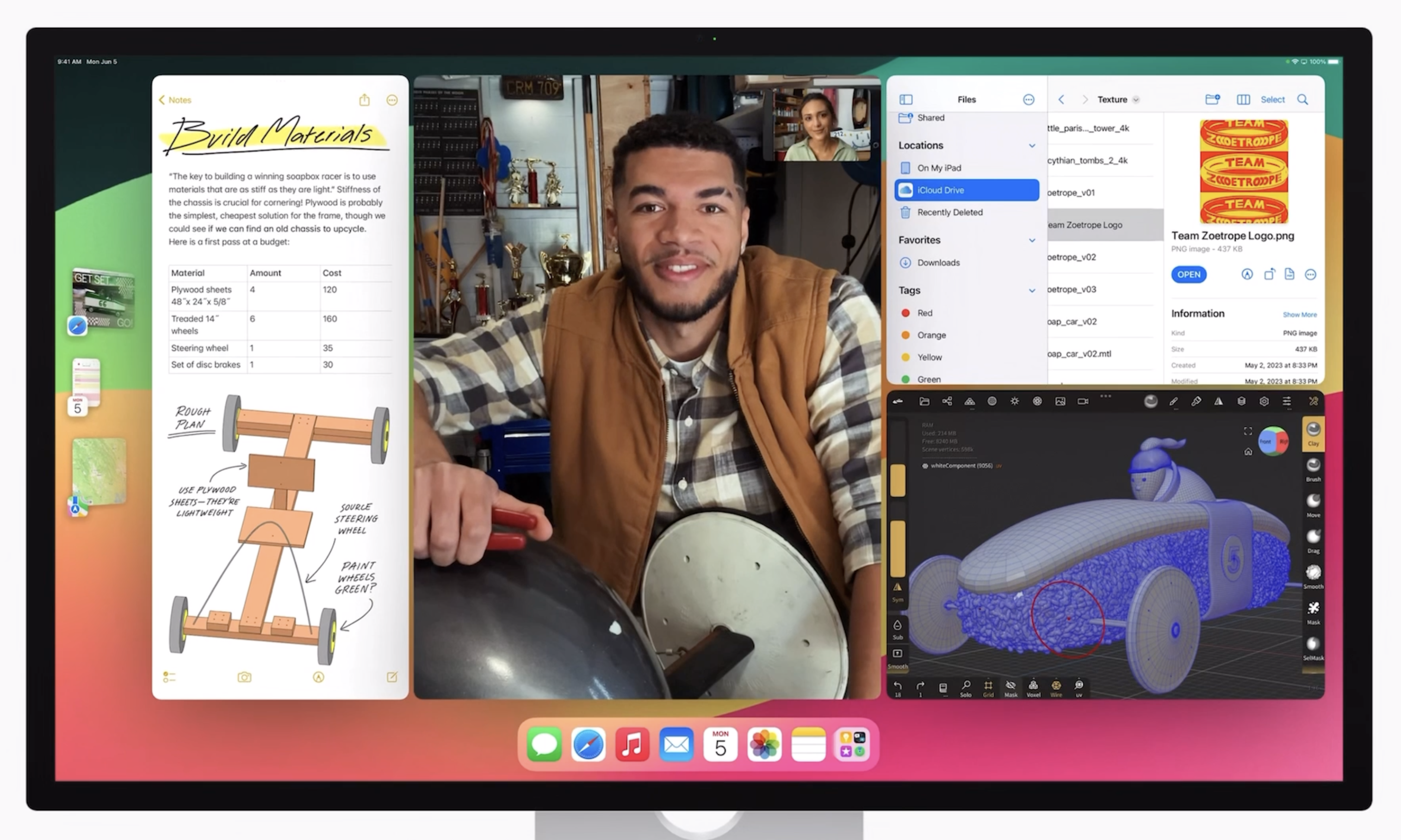 아이패드 iPadOS17 스테이지 매니저에서는 윈도우의 배치와 크기를 조절하는 유연성이 확장되어 사용자가 작업 공간을 보다 효과적으로 관리할 수 있고 외장 디스플레이에 탑재된 카메라를 지원하는 변화가 생겼습니다.