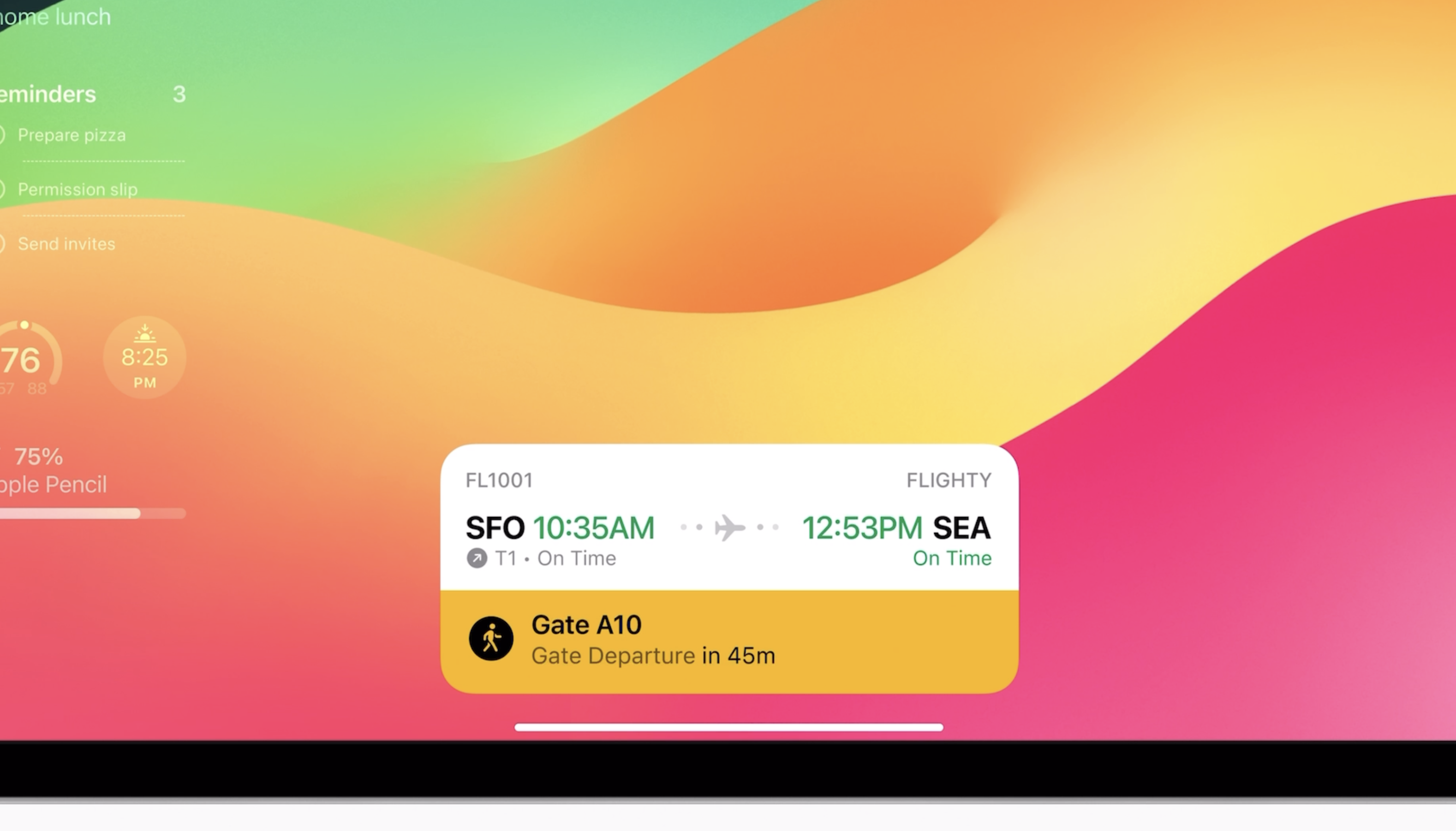 아이패드 iPadOS17에서는 사용자가 스포츠 경기, 여행 일정, 주문 음식 배달 상황 등 실시간으로 벌어지고 있는 일을 잠금 화면에서 실시간으로 볼 수 있습니다. 이 기능도 아이폰에서도 먼저 적용되었던 기능인데요. 이번에 아이패드에도 도입이 되었습니다.