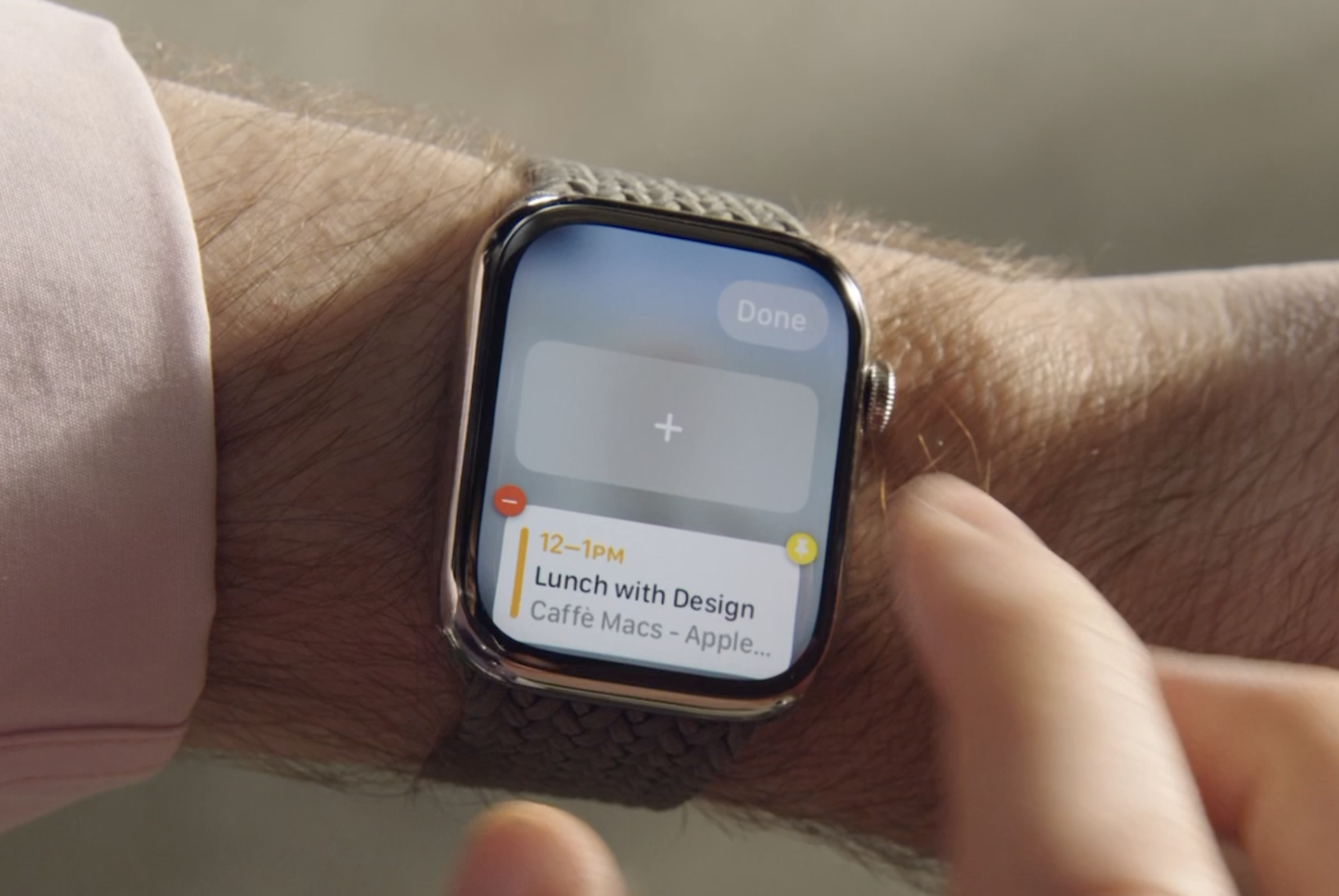 애플워치 watchOS10에서는 새롭게 디자인된 앱을 만날 수 있습니다. 더 쉽게 콘텐츠를 탐색하고 빠르게 이용할 수 있는데요. 사용자의 상황에 알맞는 정보를 보여주는 스마트 스텍을 도입해 날짜, 주식, 홈, 지도, 메시지, 세계 시계 등을 포함한 정보를 한눈에 훑어 볼 수 있게 제공합니다. 접근 방법은 디지털 크라운을 돌리면 간단하게 볼 수 있습니다. 여행 시에는 지갑앱에서 탑승권을 표시해 주고 곧 예정된 미팅이나 업무가 있으면 캘린더와 미리 알림 앱이 맨 위로 올라와서 보여집니다.