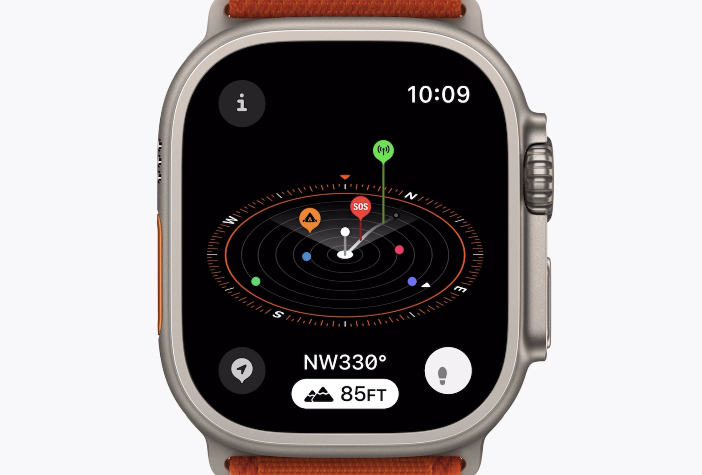 애플워치 watchOS10에서는 하이킹 기능을 더 잘 사용할 수 있게 나침반 앱의 활용도가 좋아졌습니다. 험한 탐험 길에서 유용한 변화인데요. 나침반 앱은 자동으로 두 개의 경유지를 생성하고 마지막 셀룰러 연결 경유지는 마지막 무선 신호 수신지를 추정해 메시지 확인이나 전화 연결에 도움을 줍니다. 그리고 마지막 긴급 통화 경유지는 경로 도중 사용자의 기기가 마지막으로 이동통신사 네트워크에 연결됐던 지점을 추정해 긴급 상황에서 긴급 구조 요청을 보낼 수 있게 해줍니다.
