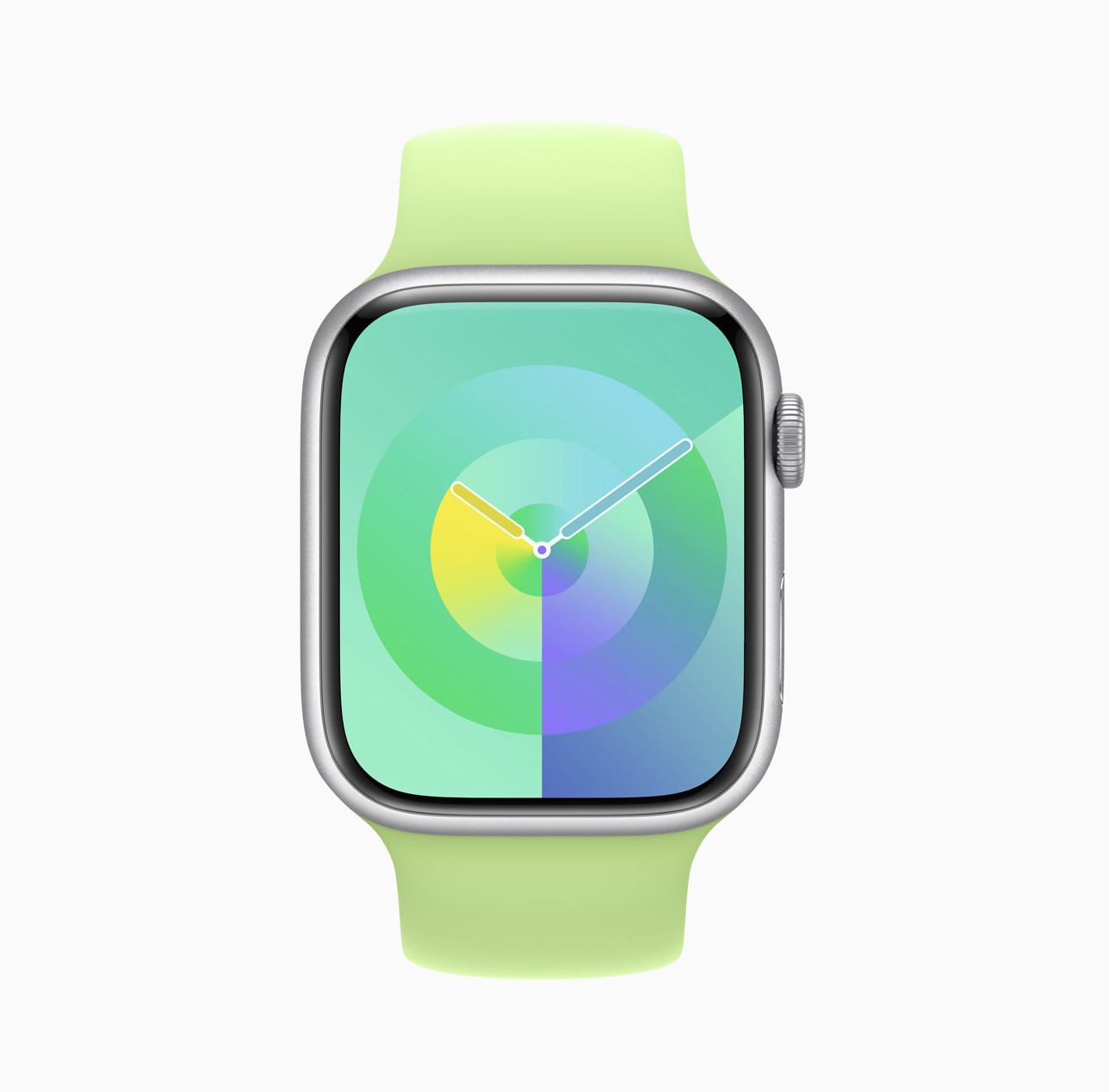 애플워치 watchOS10에서는 정신건강을 지킬 수 있는 기능이 들어갔습니다. 마음 챙기기 앱으로 사용자는 순간의 감정 인신력과 회복력을 높이는 데 도움을 받을 수 있습니다. 디지털 크라운을 돌려 다양한 모양들을 스크롤해 자신의 기분을 표현할 수 있고 감정에 가장 큰 영향을 끼치는 것이 무엇인지 선택하고 기분을 자세히 묘사할 수 있습니다.
