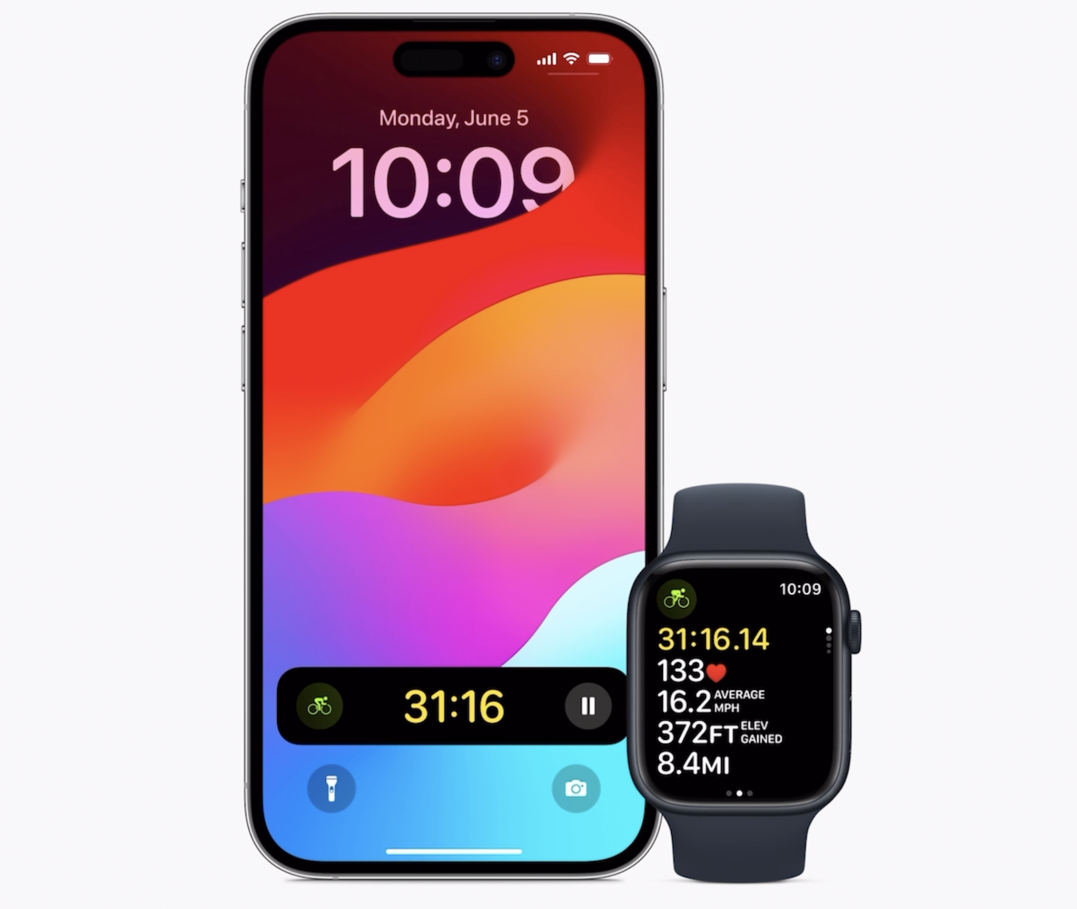 애플워치 watchOS10에서는 사이클링 운동을 시작하면 자동으로 아이폰에 실시간 현황으로 표시가 됩니다. 탭하면 화면 전체에 정보를 표시하는 변화를 볼 수 있습니다. 그리고 심박수 영역, 고도, 특정 경로 기록 경주, 사용자 설정 운동, 새로운 사이클링 속도 보기와 같은 운동 현황을 아이폰의 디스플레이 크기에 알맞게 최적화되어 볼 수 있습니다.