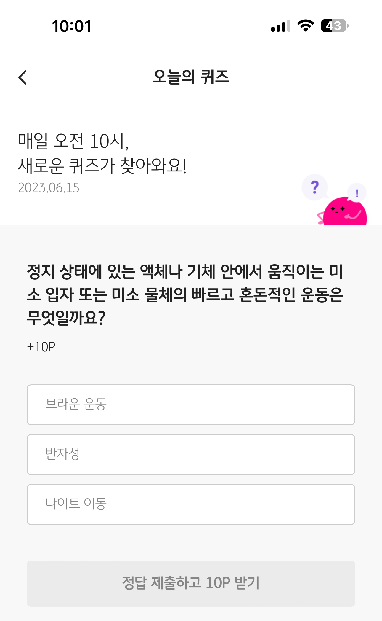 KB Pay 오늘의 퀴즈 정답은 브라운 운동 입니다