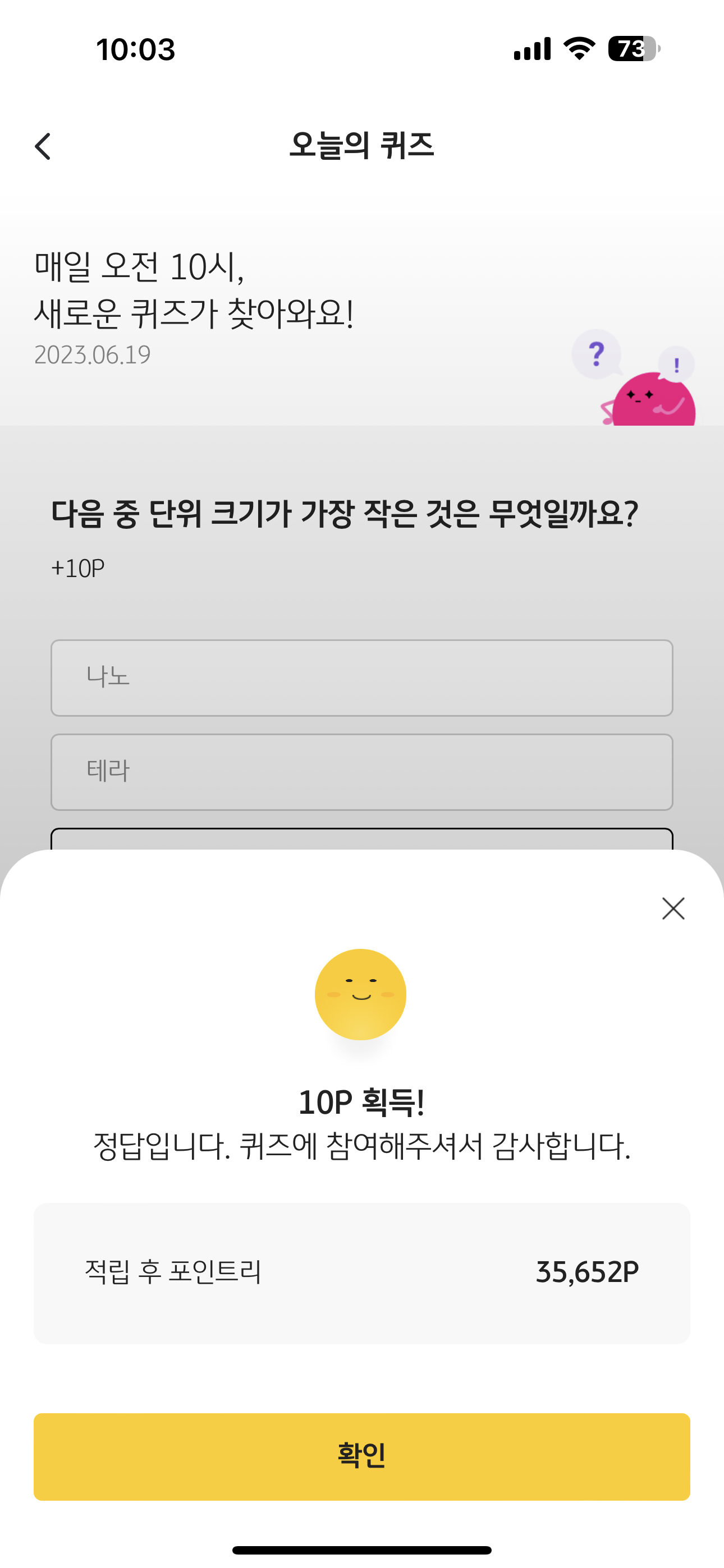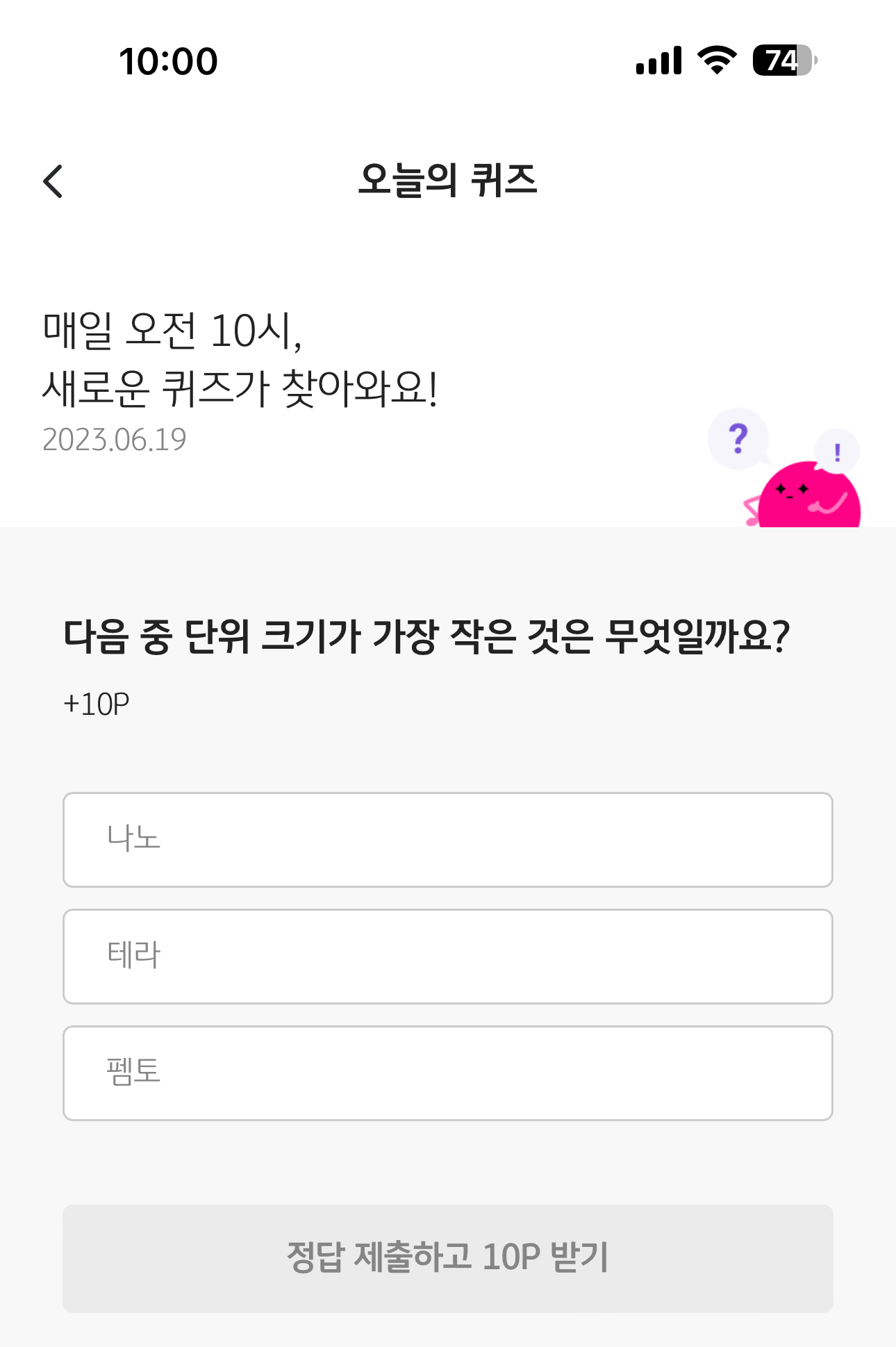 KB Pay 오늘의 퀴즈 정답은 펨토 입니다