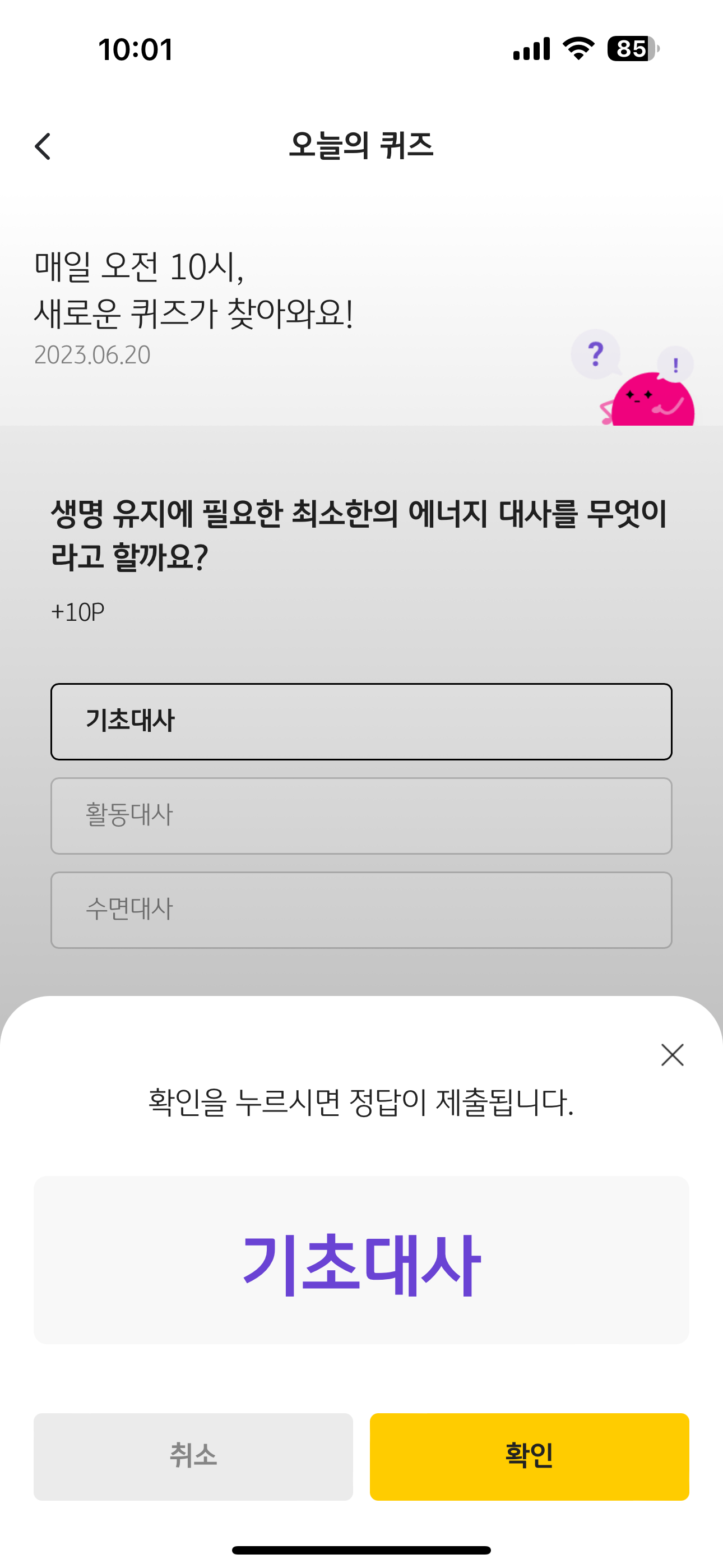 KB Pay 오늘의 퀴즈 정답은 기초대사 입니다