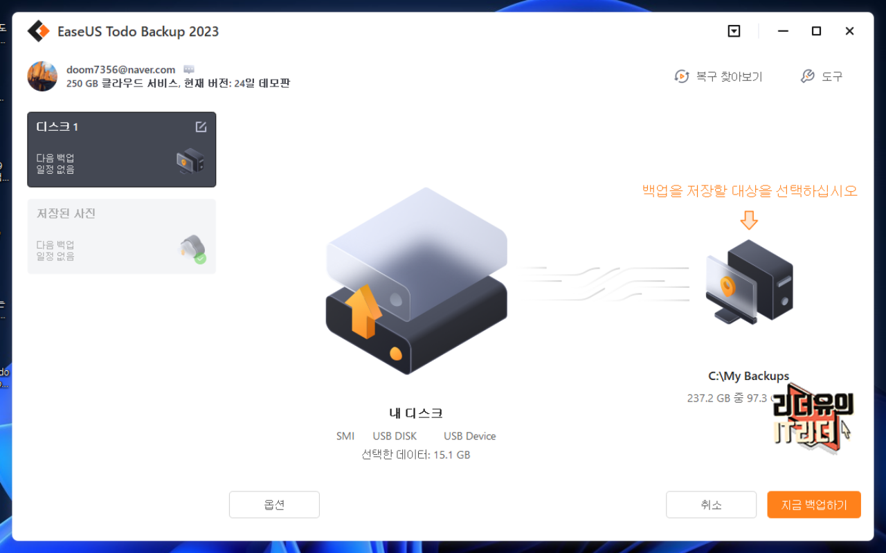 그리고 어디에 백업을 할지 선택이 가능합니다. 백업을 저장할 대상을 선택하라고 나오죠.