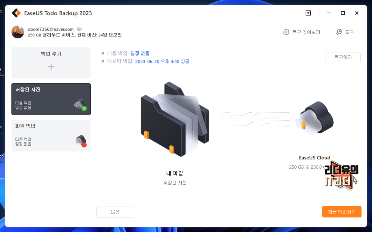 일반 사용자의 경우 별도의 외장하드나 NAS가 없어서 백업을 하기가 애매할 때가 있죠. 이럴때 클라우드 서비스를 이용해 가볍게 백업을 할 수 있어 좋습니다.