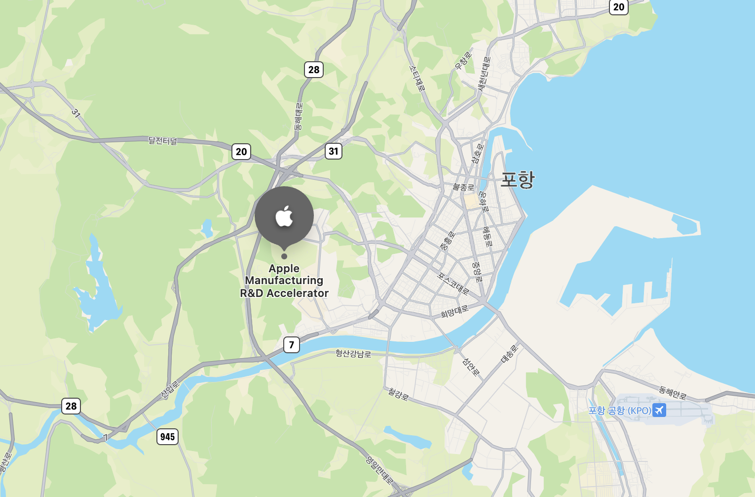 애플 제조업 R&D 지원센터는 포항공과대학교(포스텍, POSTECH) 내에 위치하고 있습니다. 애플이 세계 최초로 만든 제조업 특화 R&D 지원센터로 스마트 공정 관련 장비를 구축, 중소 제조기업들을 대상으로 교육과 일대일 컨설팅 등을 무상으로 제공하고 있습니다.