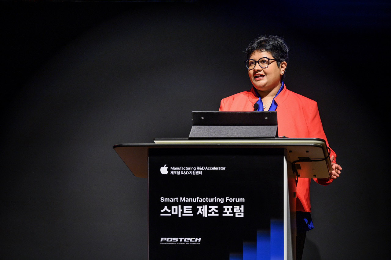 애플 오퍼레이션 담당 부사장 프리야 발라수브라마니암(Priya Balasubramaniam)은 이번 행사에서 스마트 제조에 대한 기조 연설을 했습니다. 한국에 다시 돌아와 업계를 선도하는 혁신가들을 만나게 되어 매우 기쁘다고 했고 여기 포항에 위치한 애플 제조업 R&D 지원센터에서 주최한 스마트 제조 포럼의 참여자가 되어 이러한 발전을 보게 되어 글로벌 등대 네트워크를 대표하여 설레임과 감사의 뜻을 전한다고 말했습니다. 그리고 스마트 제조란 혁신을 발휘하는 것이고 기존과 다르게 생각하고 만들고 기존의 틀을 깨는 새로운 방식을 찾는 것을 의미한다고 이야기했습니다. 특히 한국 제조업의 성공과 성장세는 정말 경이롭다고 했는데요. 그래서 애플이 첫 제조업 R&D 지원센터를 설립하는데 한국을 선택한 이유라고 합니다.