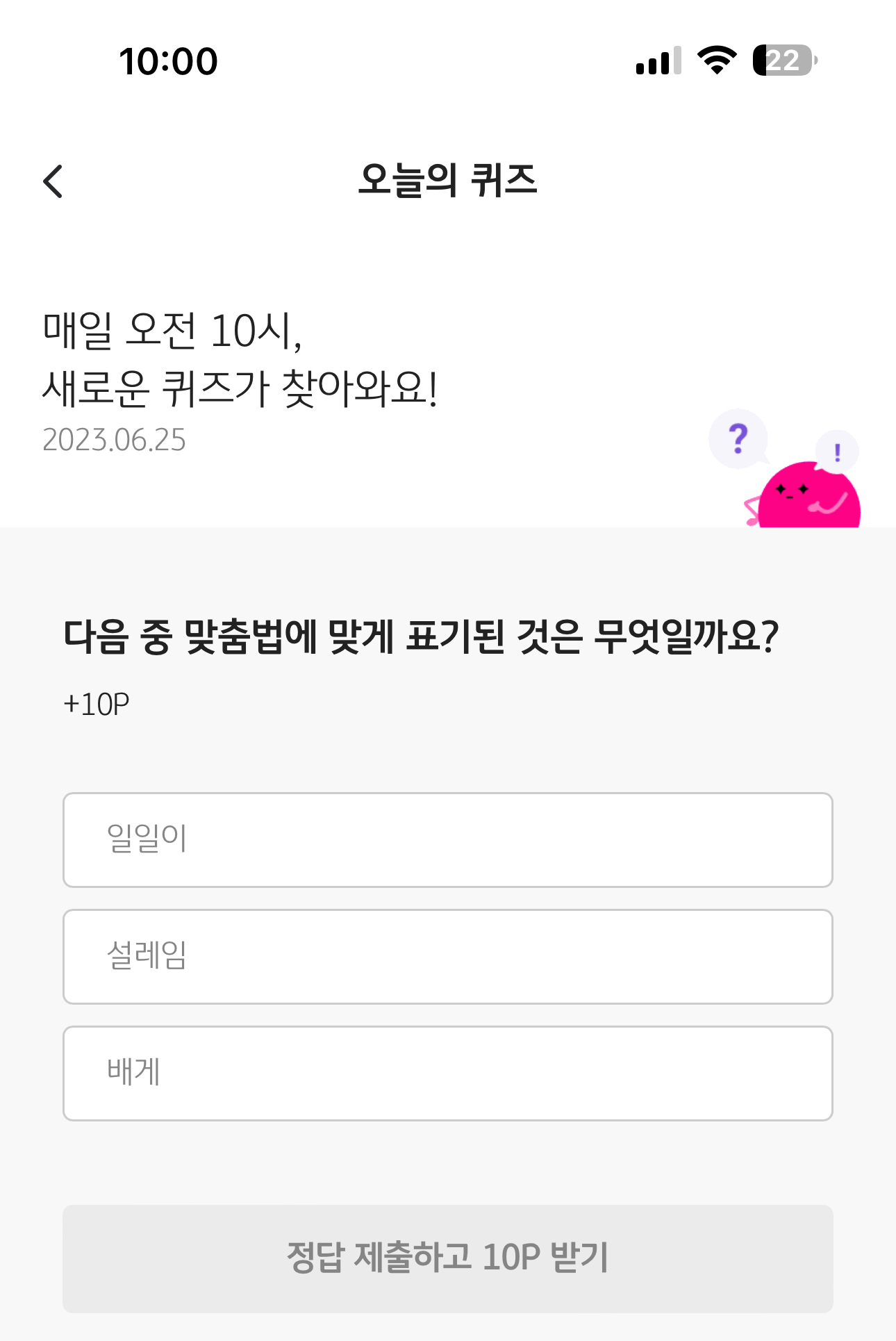 KB Pay 오늘의 퀴즈 정답은 일일이 입니다
