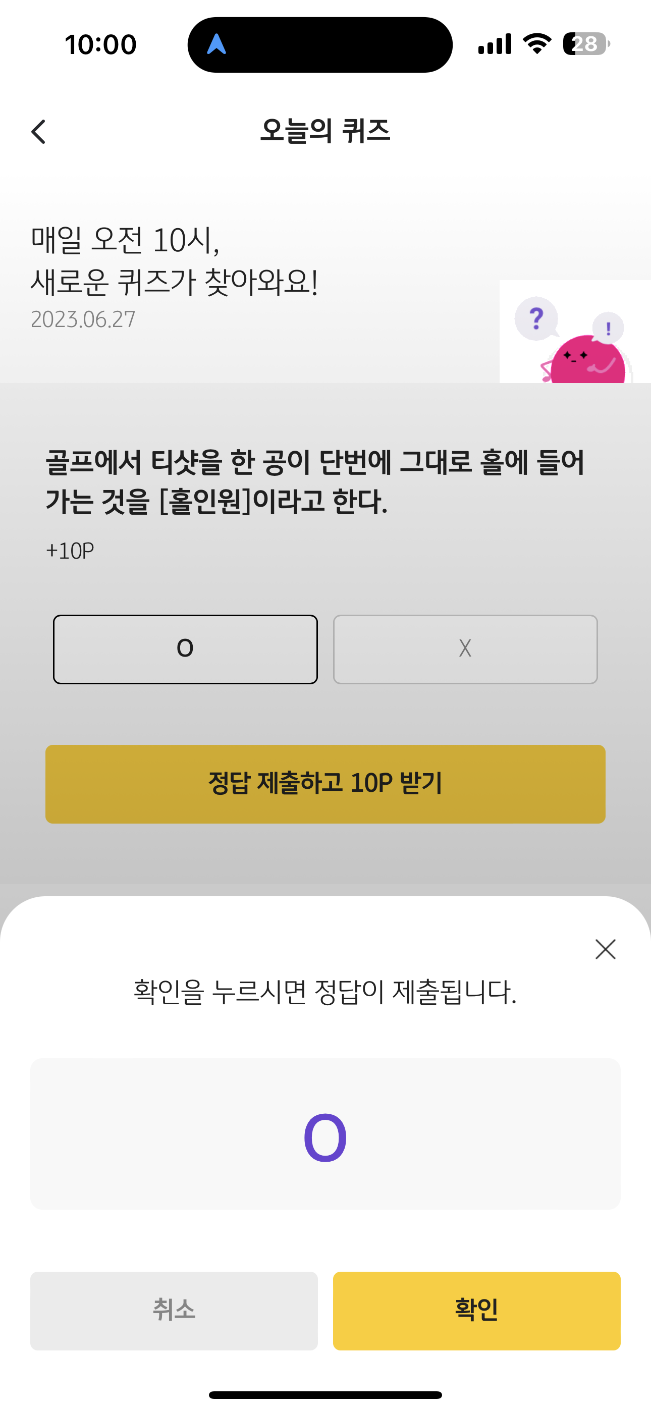 KB Pay 오늘의 퀴즈 정답은 O 입니다