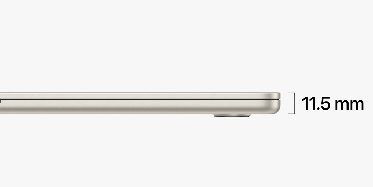 애플 맥북에어15는 두께가 11.5mm로 진짜 세상에서 가장 얇은 15인치 노트북입니다. 윈도우 노트북을 보면 가장 얇은 부분만을 강조해서 두께를 10.5~12.9mm 이런식으로 표현하는데요. 맥북에어15는 가장 두꺼운 곳의 두께가 11.5mm로 진짜 얇은 15인치 노트북입니다.