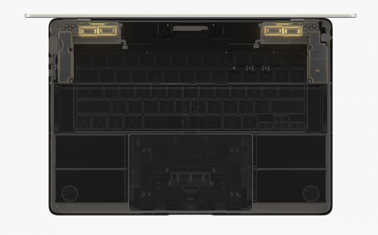 애플 맥북에어15에서는 감동적인 스피커를 만날 수 있습니다. 이것도 애플 맥북이 가장 잘하는 분야인데요. 윈도우 노트북들도 스피커가 좋다고 하지만 맥북과 비교해 보면 2배 이상 차이나는 성능을 경험할 수 있습니다. 맥북에어15는 두 개의 트위터와 두 쌍의 포스 캔슬링 우퍼로 2배의 베이스 깊이로 꽉찬 사운드를 들을 수 있습니다. 돌비 애트모스를 지원해 공간 음향을 들을 수 있어 최고의 음악 감상, 영상 감상을 할 수 있습니다.