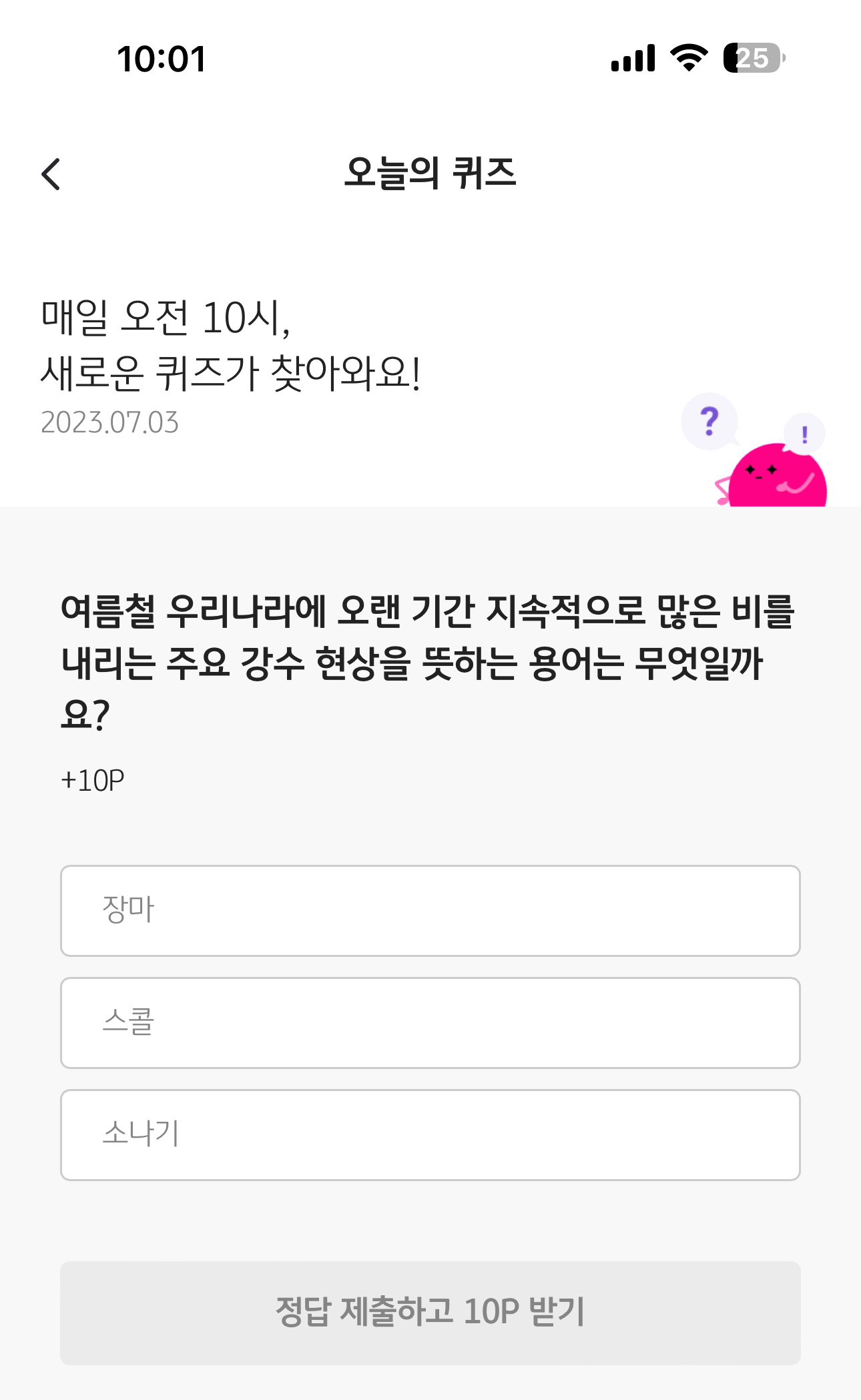 KB Pay 오늘의 퀴즈 정답은 장마 입니다