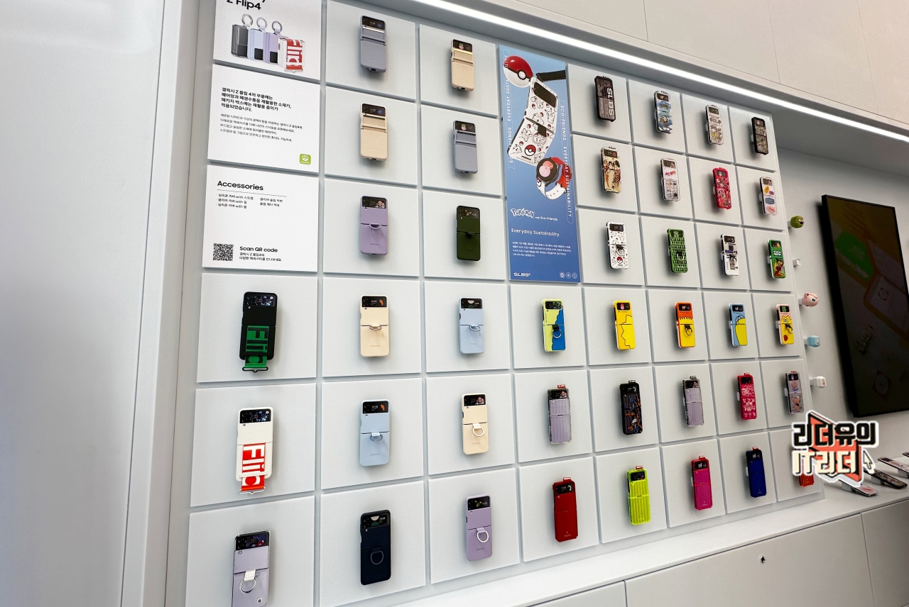 벽면에는 감각적인 케이스와 조합된 갤럭시Z 플립4를 만날 수 있습니다.