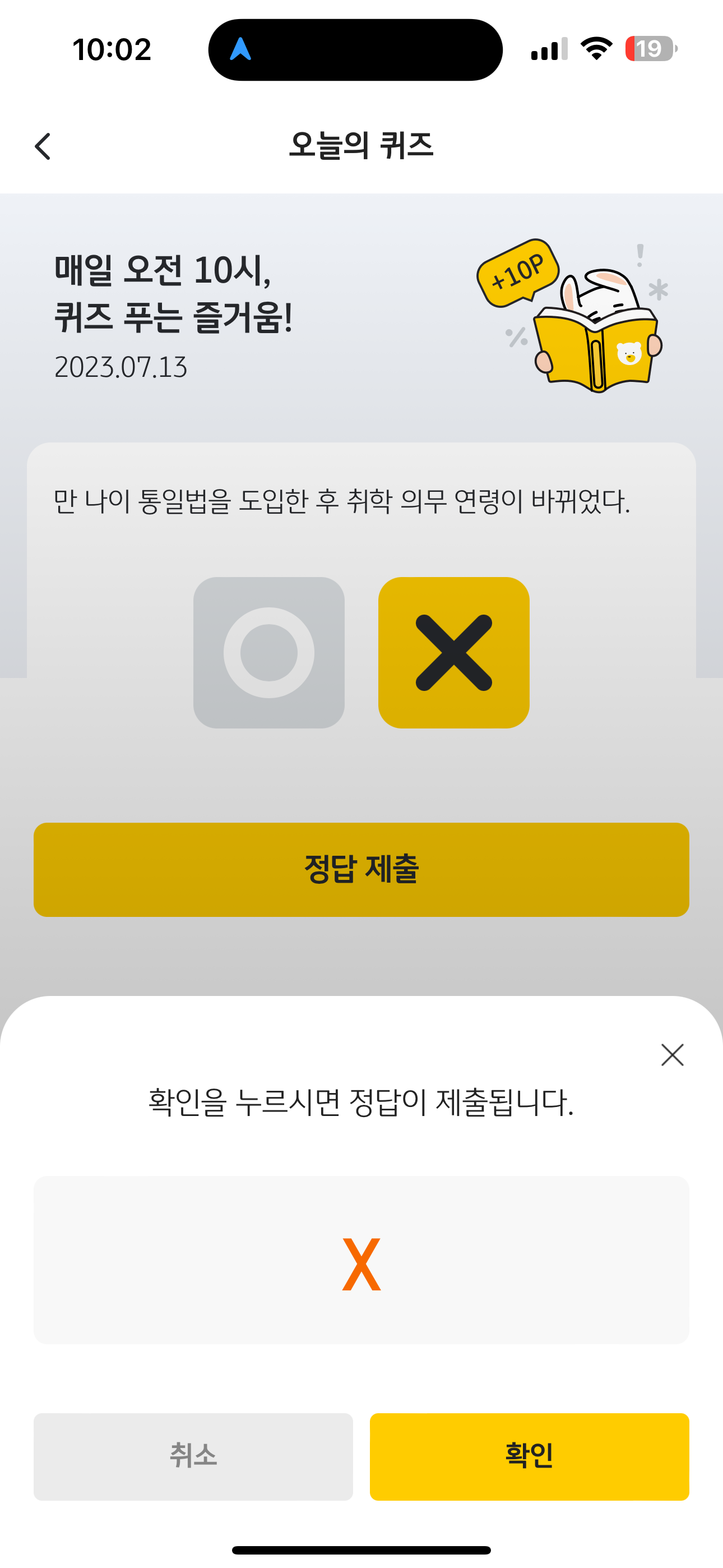 KB Pay 오늘의 퀴즈 정답은 X 입니다