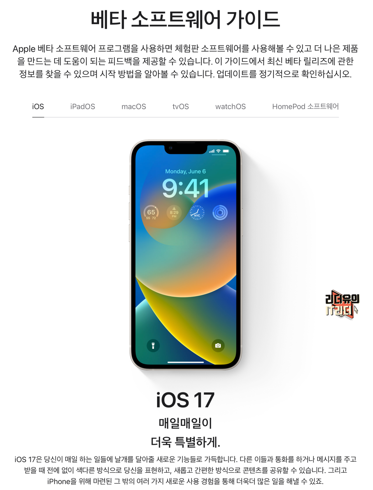 새로운 애플 업데이트 iOS17, iPadOS17, watchOS10, MacOS Sonoma(맥OS 소노마), tvOS17, 홈팟소프트웨어17을 빨리 만나고 싶은 분들은 비교적 안정적인 퍼블릭 베타를 통해 먼저 체험해 보고 같이 버그를 잡아 나가면 될 것 같습니다.