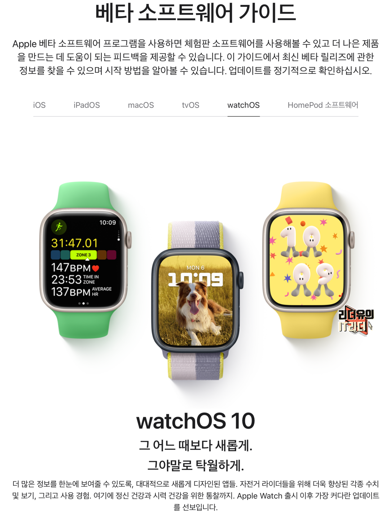 애플워치 watchOS10 퍼블릭 베타도 마찬가지 입니다.