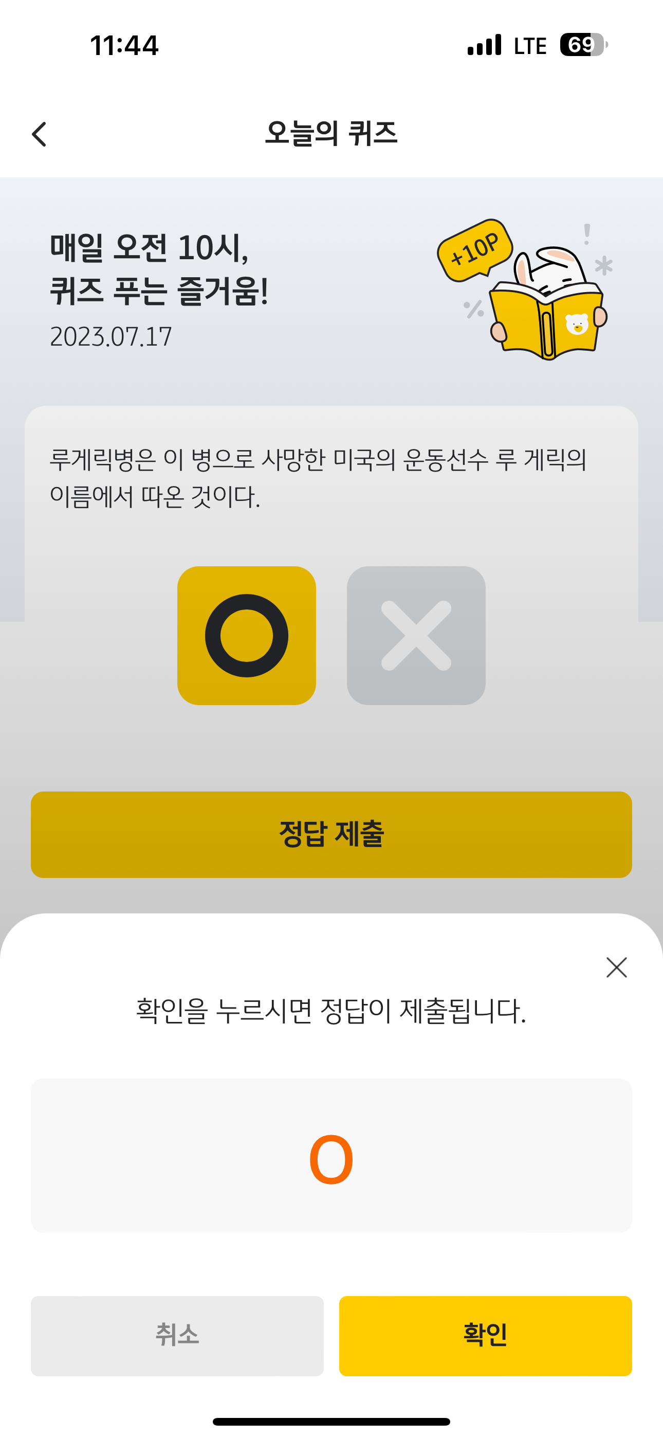 KB Pay 오늘의 퀴즈 정답은 O 입니다