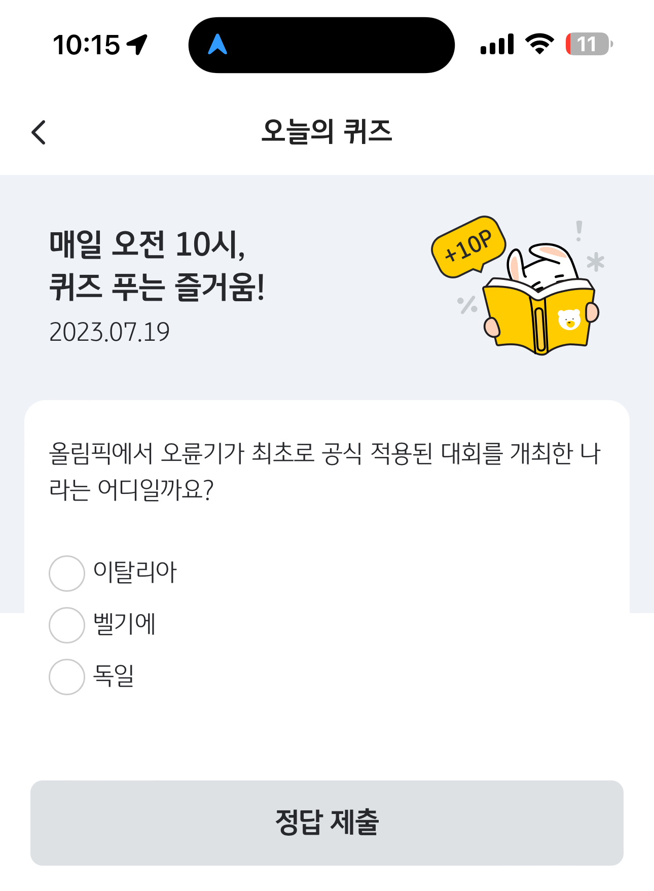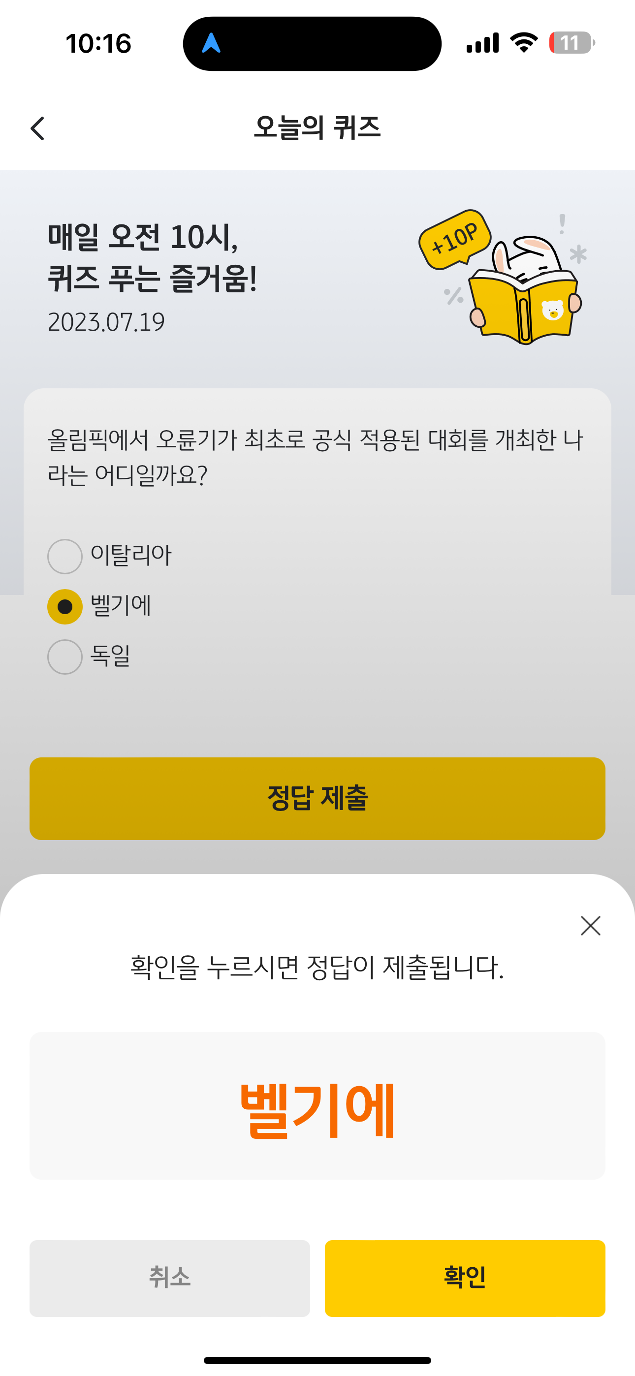KB pay 오늘의 퀴즈 정답은 벨기에 입니다