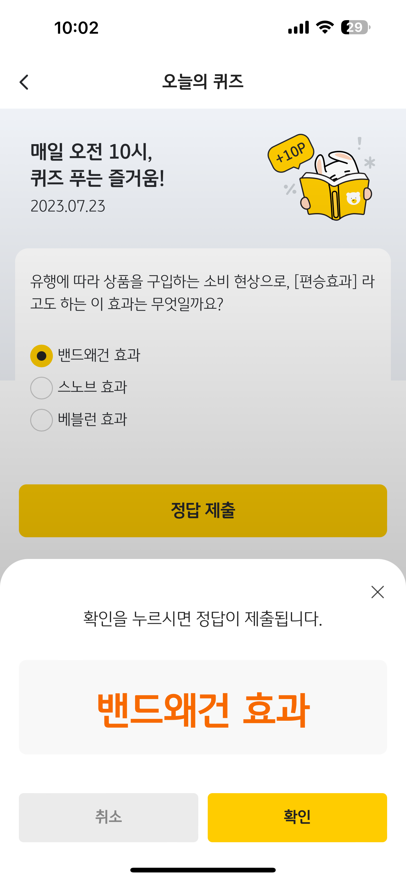 KB Pay 오늘의 퀴즈 정답은 밴드왜건 효과 입니다
