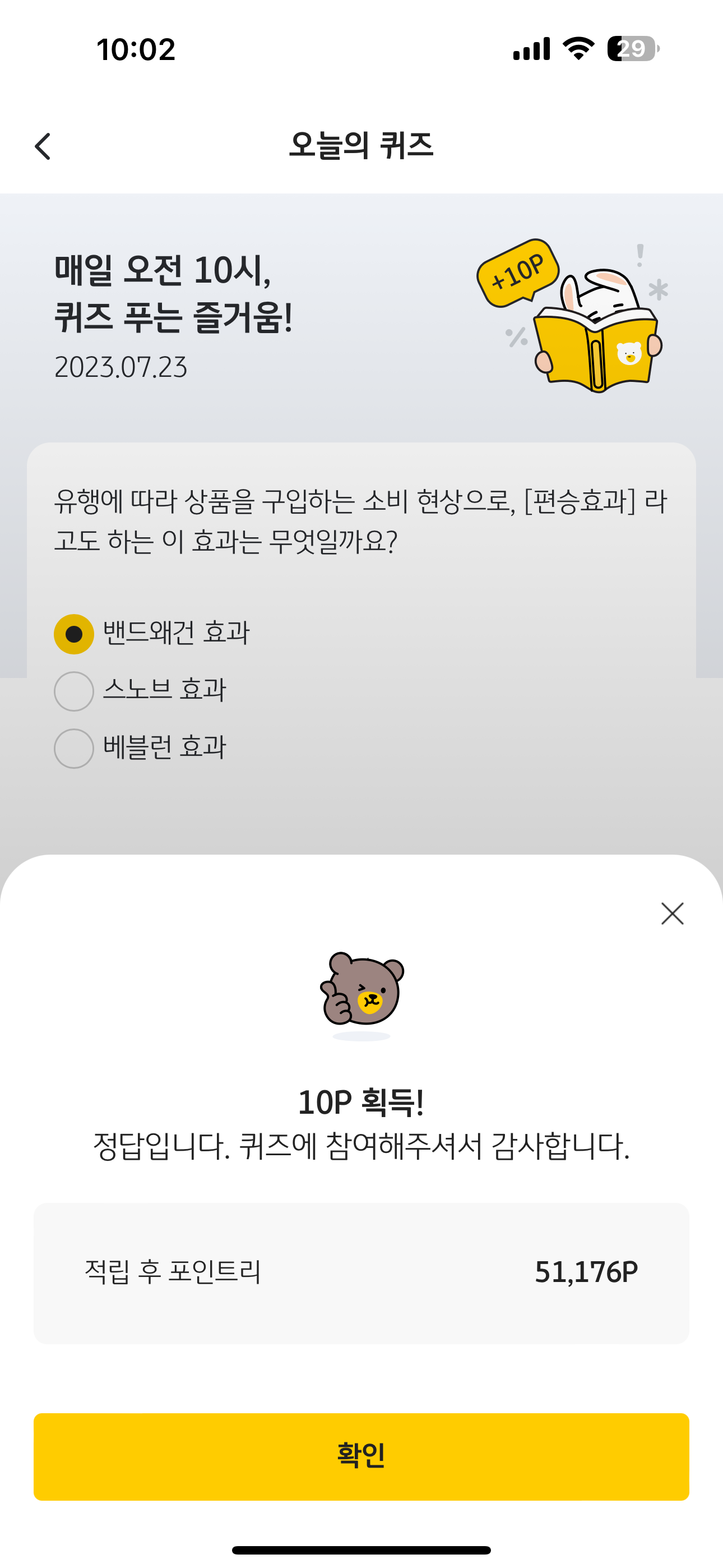 KB Pay 오늘의 퀴즈 정답은 밴드왜건 효과 입니다