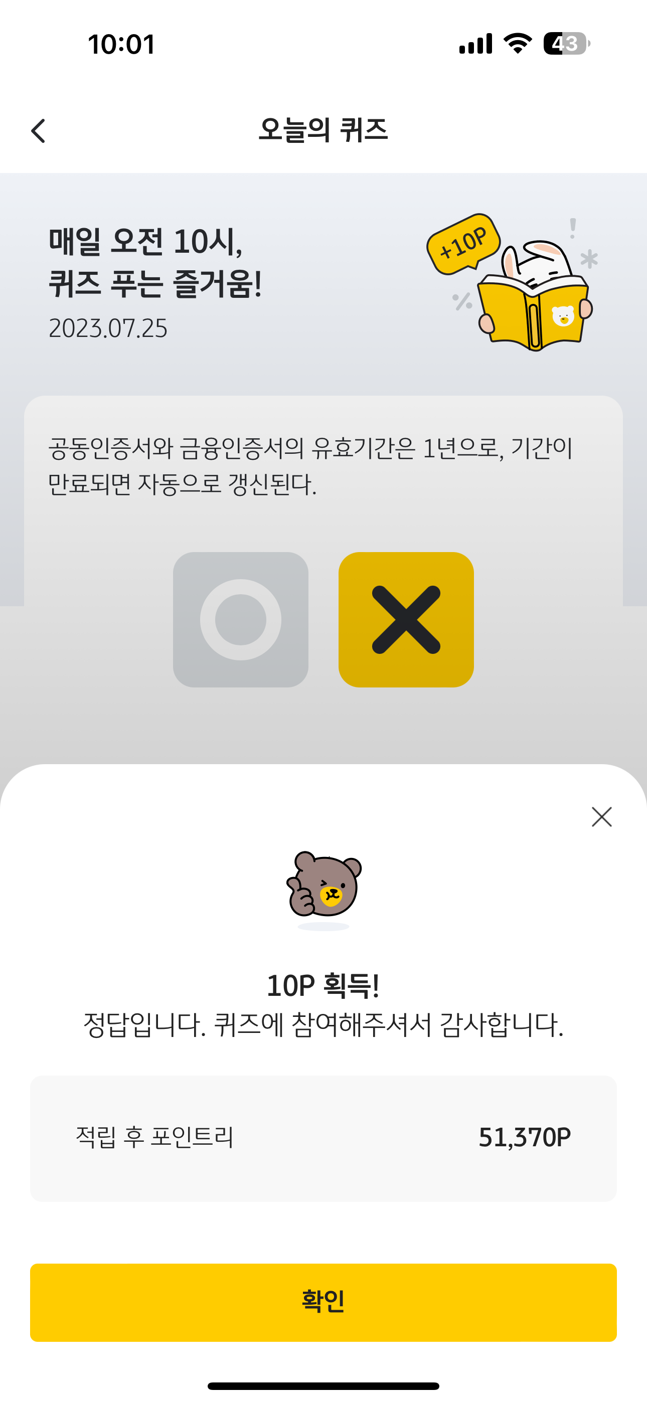 KB Pay 오늘의 퀴즈 정답은 X 입니다