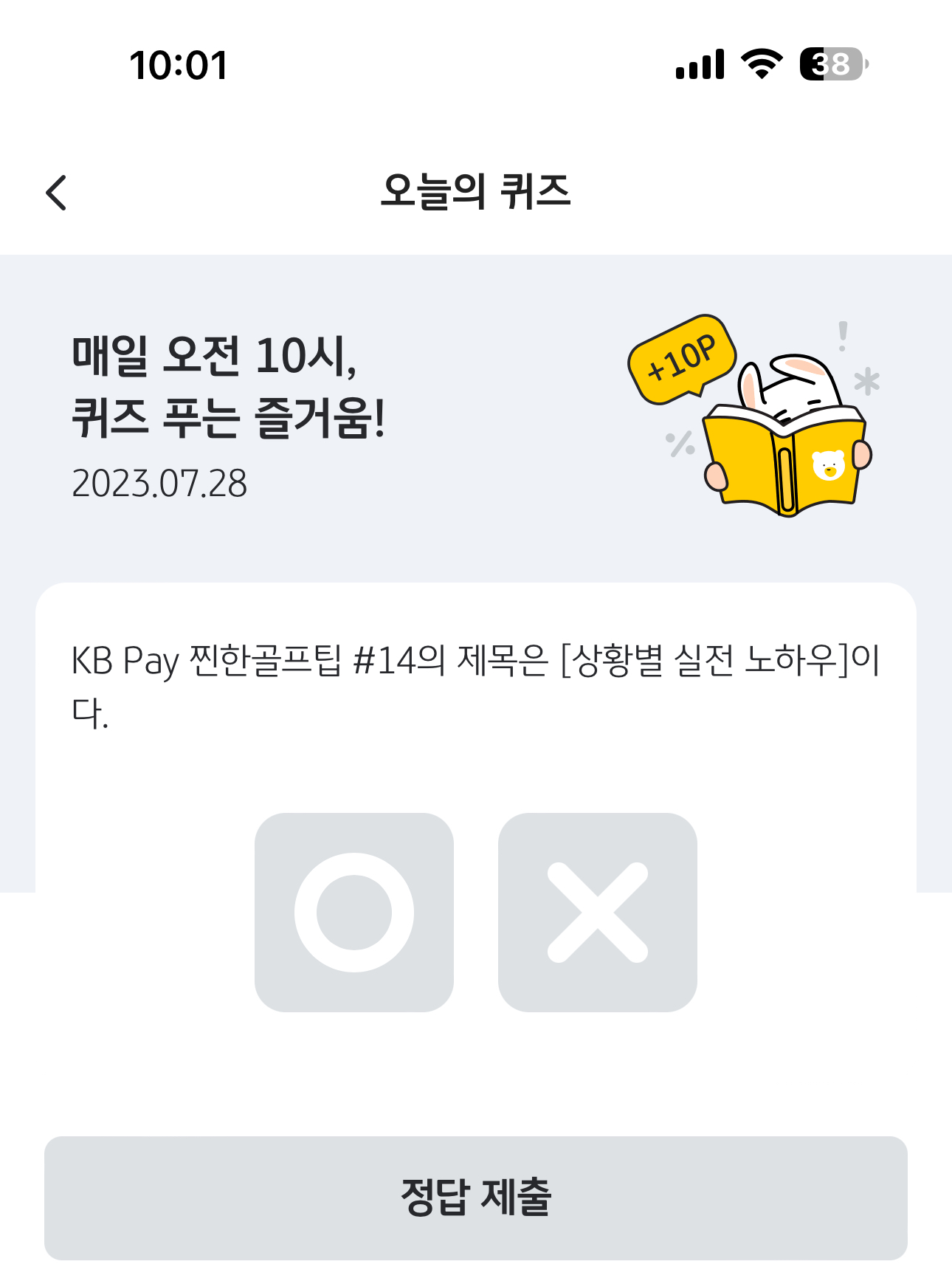 KB Pay 오늘의 퀴즈 정답은 X 입니다