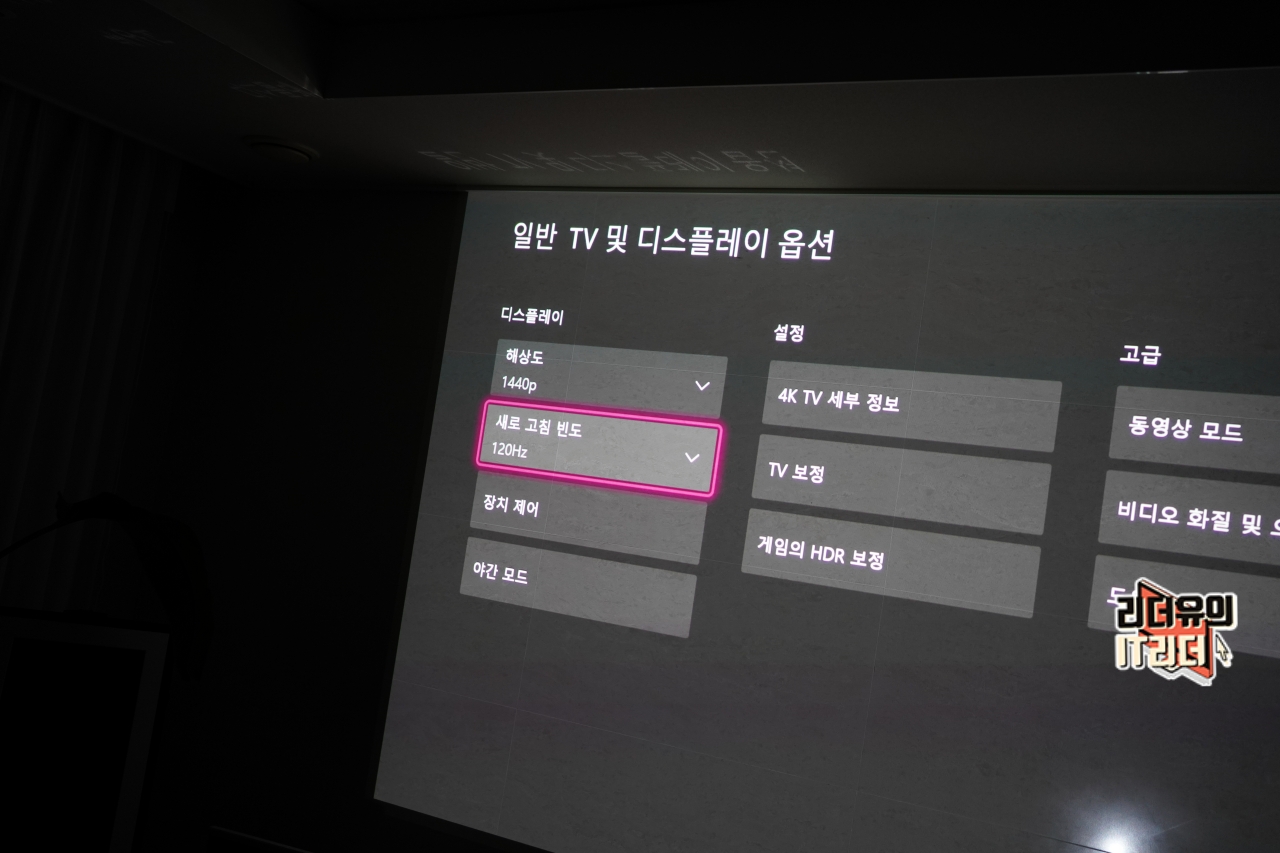 뷰소닉 BK660-4K 빔프로젝터를 연결해서 설정에 가면 1440p 해상도와 120Hz 고주사율 선택이 가능합니다. 기존 빔프로젝터에서 불가능했던 옵션입니다.