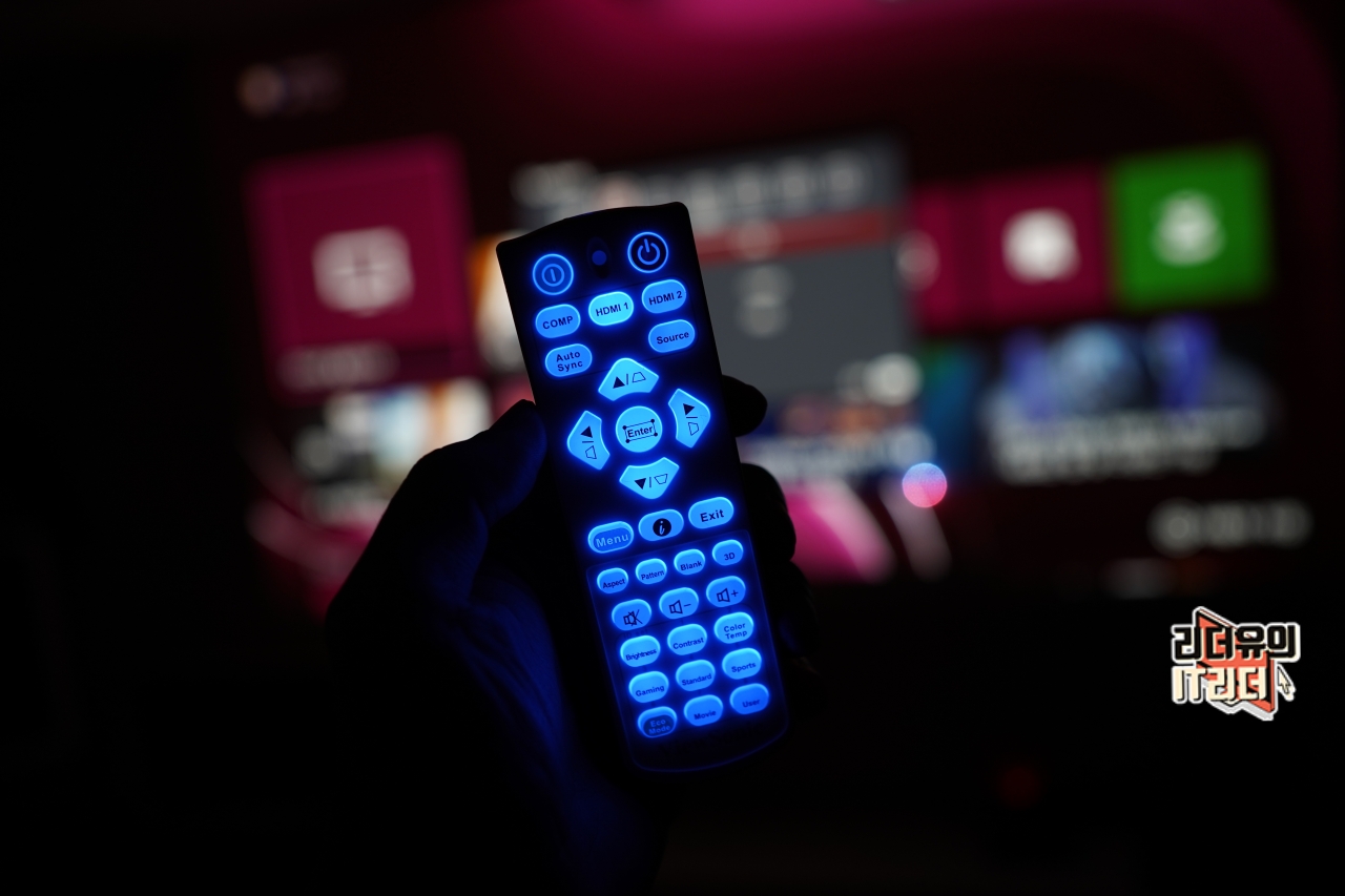 그리고 리모컨도 포함되어 있어서 컨트롤 적인 문제도 없습니다. 사실상 스마트 빔프로젝터의 역할을 충분히 할 수 있다고 보시면 됩니다.