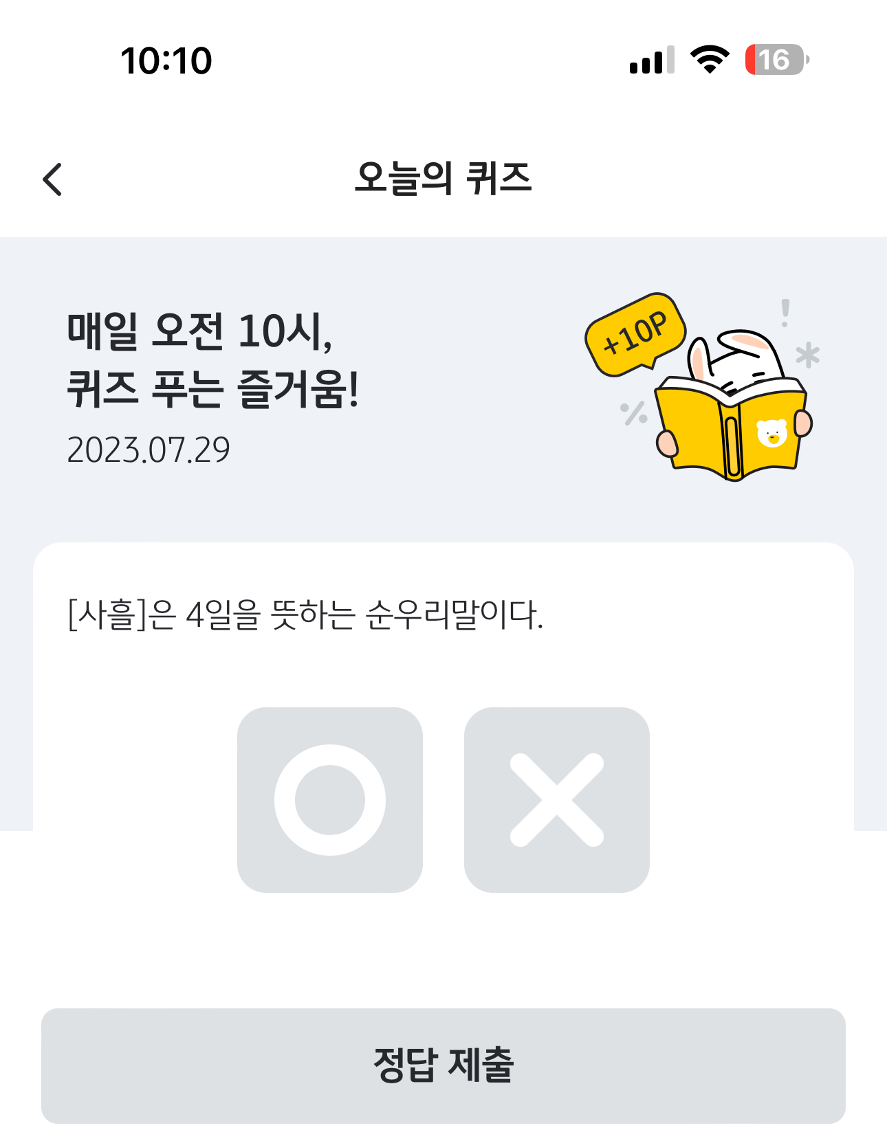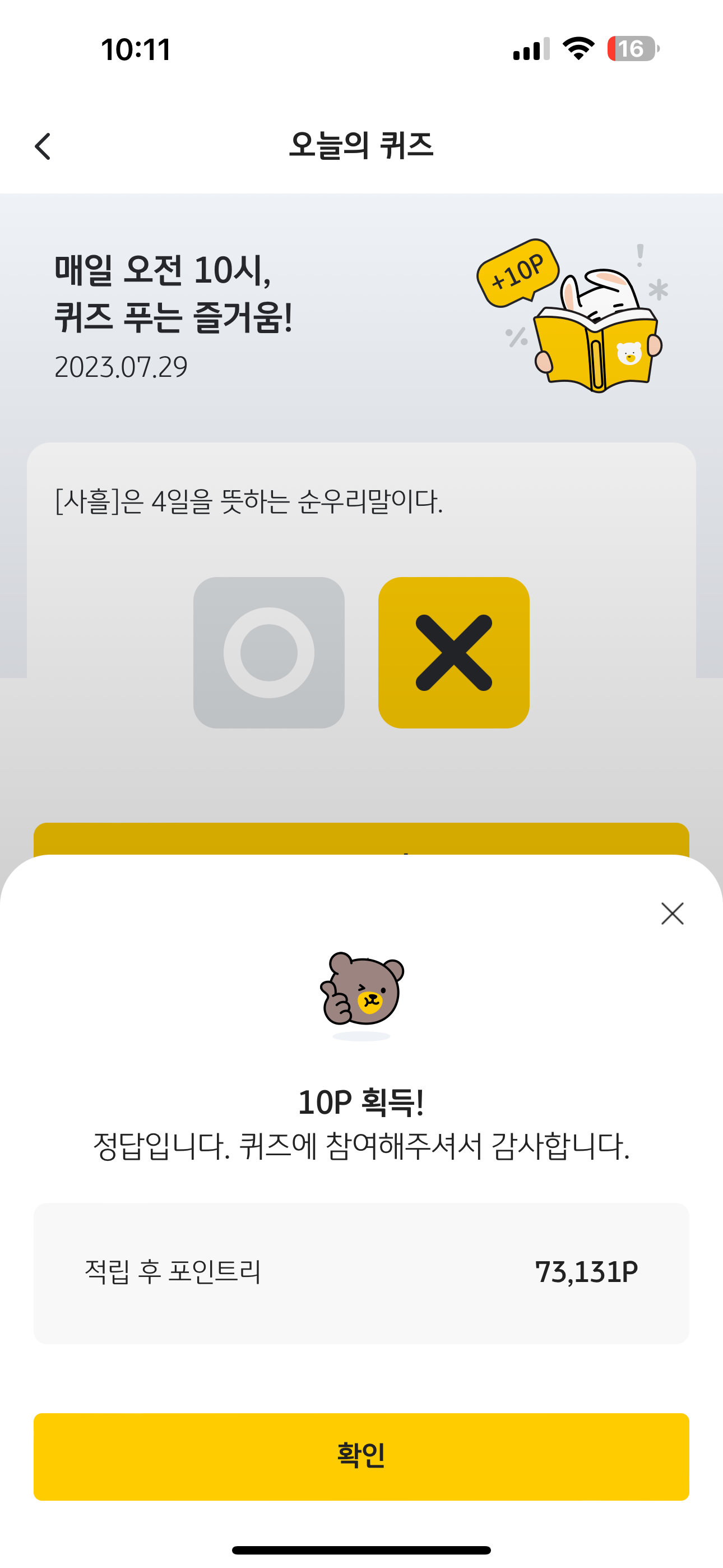 KB Pay 오늘의 퀴즈 정답은 X 입니다