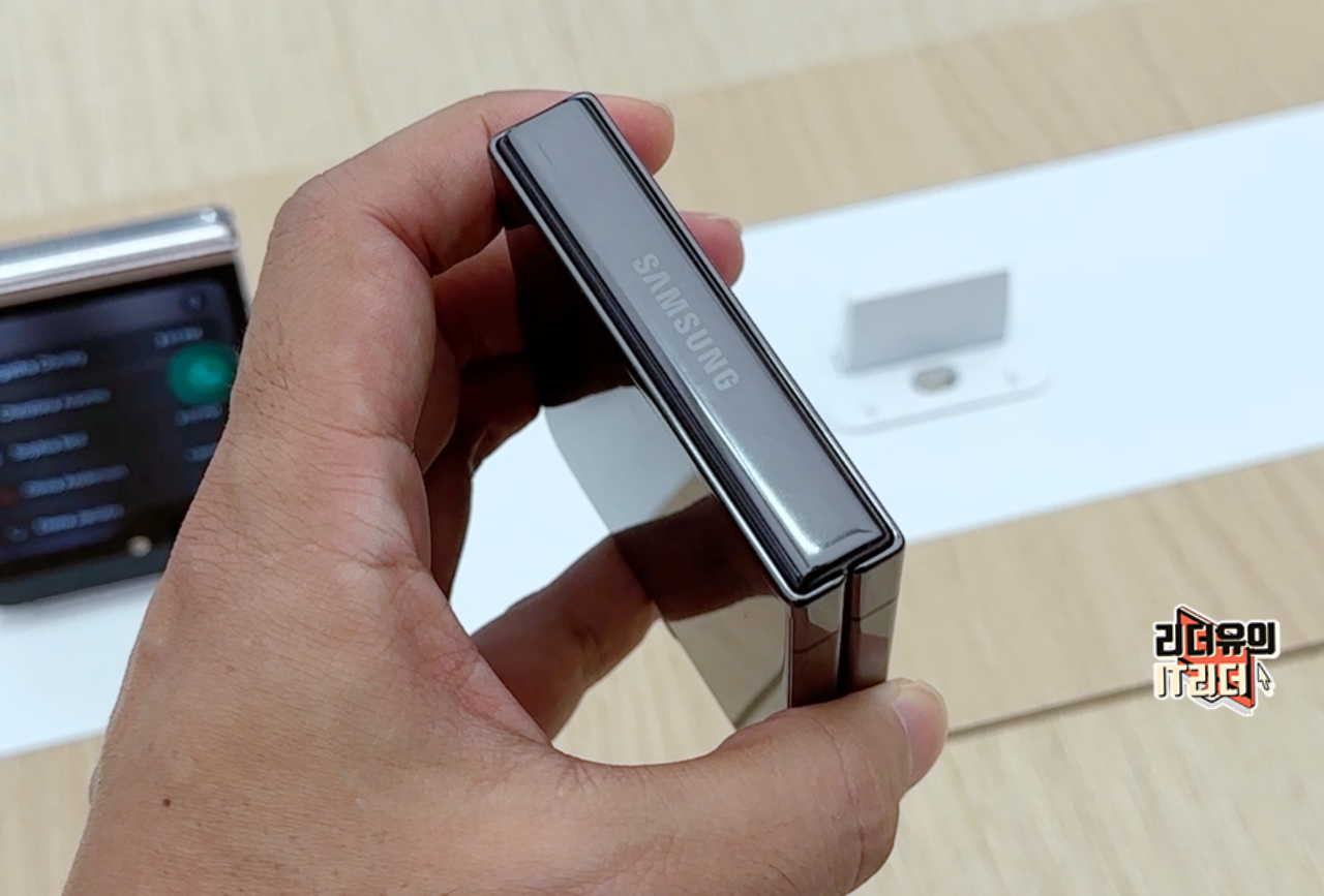 갤럭시Z 플립5 그라파이트 색상은 블랙에 가까운 색상이라 보시면 됩니다. 그래서 힌지 영역도 블랙 라인이라 전체적으로 깔끔한 디자인을 느낄 수 있습니다.