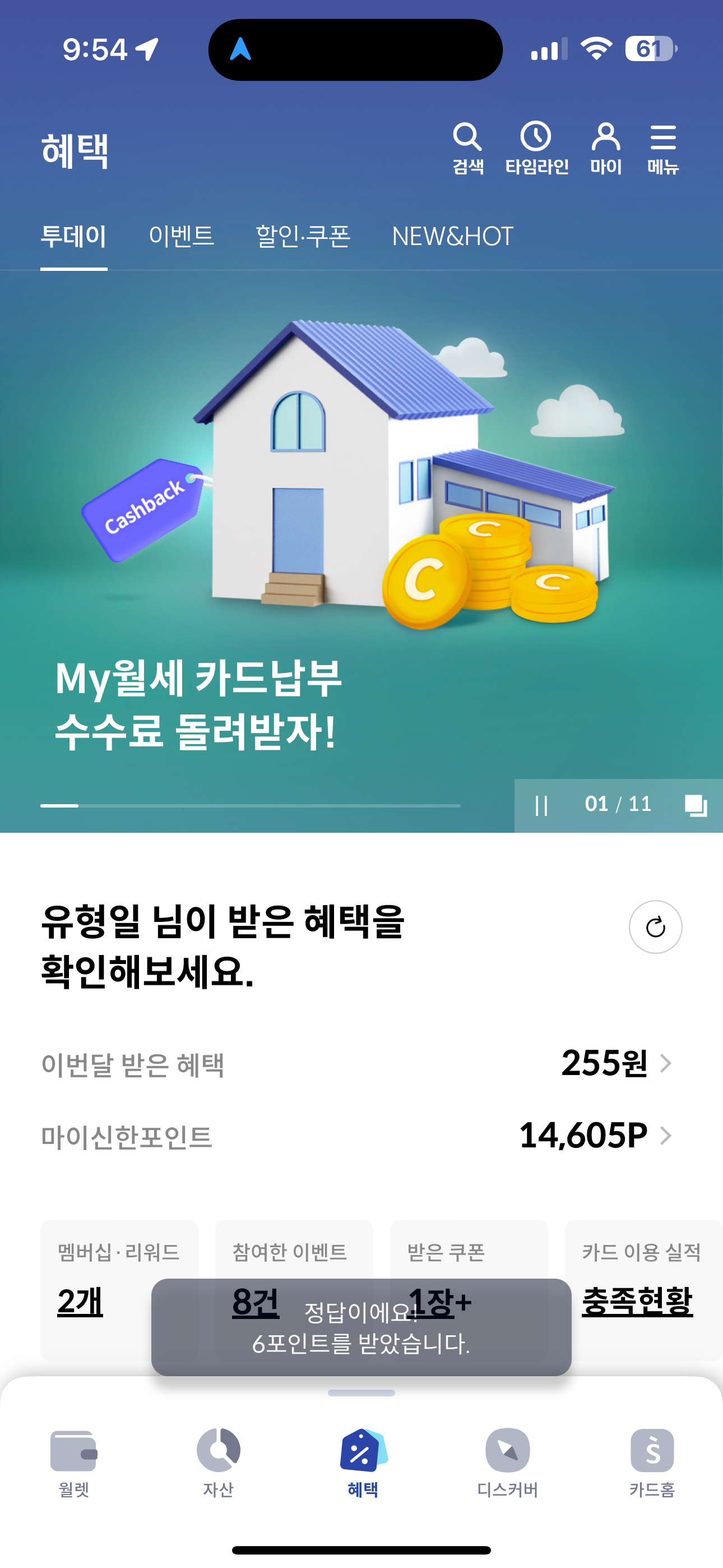 6포인트를 받았습니다. 포인트는 현금 전환이 가능하니 꼭 받으시고요. 여러분의 재테크를 응원합니다