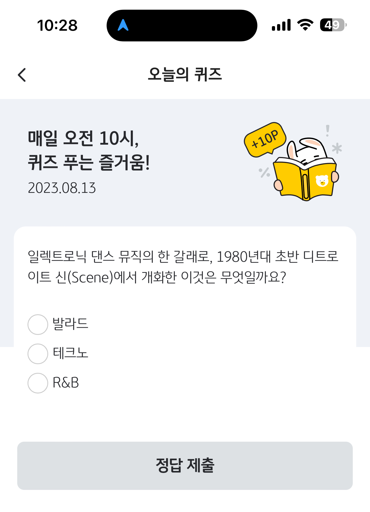 KB Pay 오늘의 퀴즈 정답은 테크노 입니다