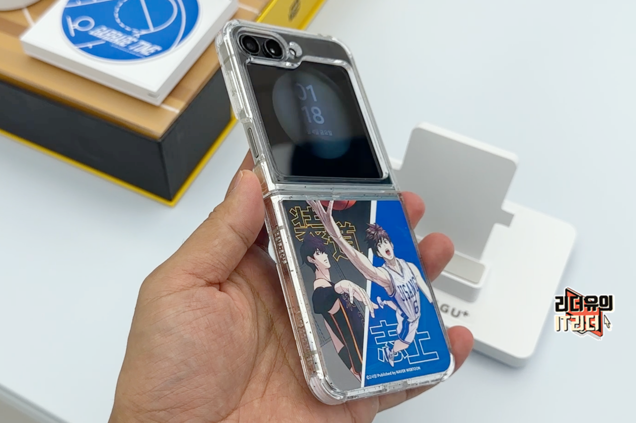 삼성 갤럭시Z 플립5에 가비지타임 플립 수트 케이스를 장착한 모습입니다. 아재인 저는 이해 못하지만 꽤 유명한 네이버웹툰인가 봅니다. MZ 세대들이 좋아하나요?