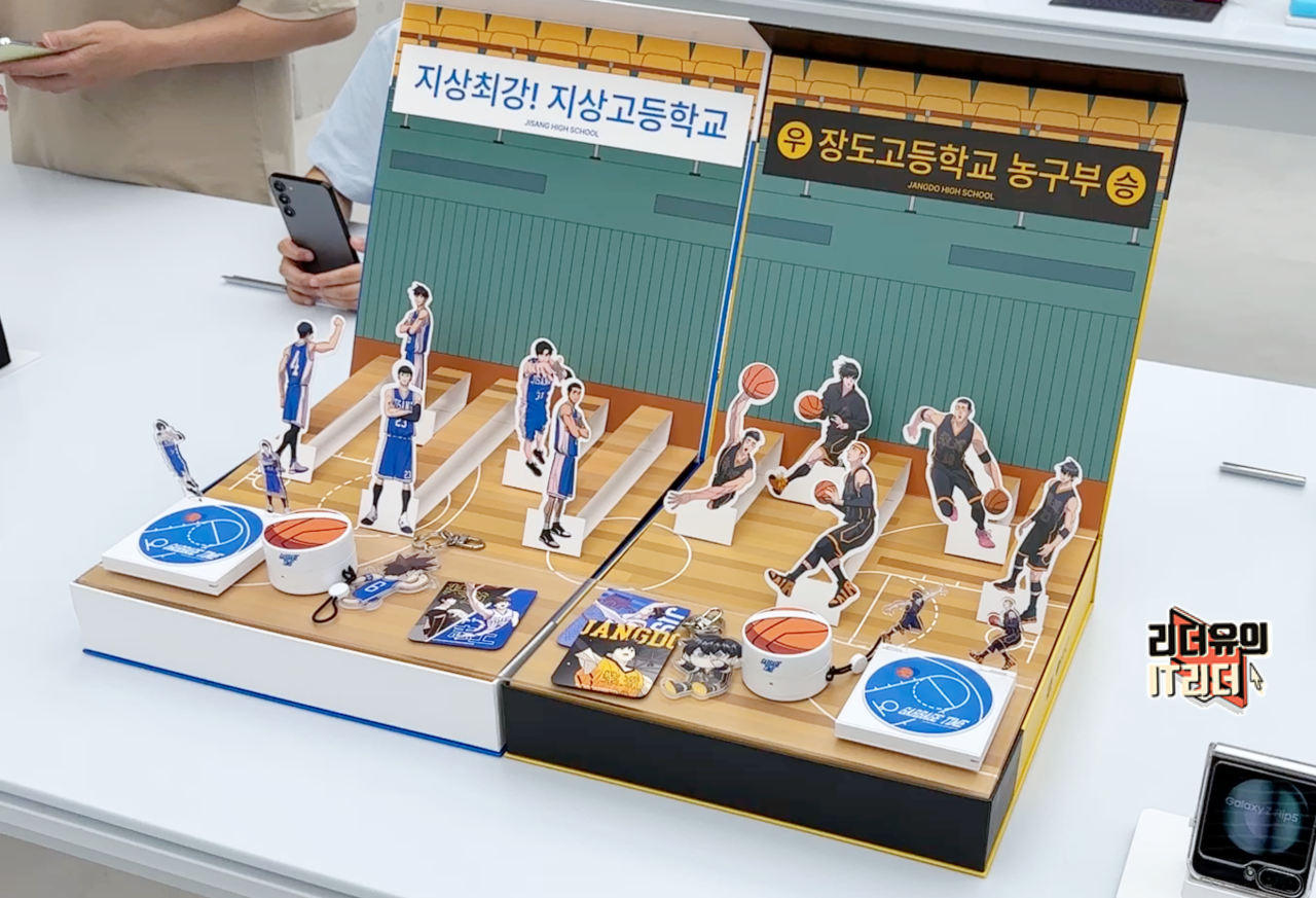 삼성 갤럭시Z 플립5 가비지타임 에디션은 지상고 500대, 장도고 500대 총 1000대 한정판으로 준비되었습니다. 위에 보면 두개의 팀이 하나의 패키지 같지만 각각의 패키지 입니다. 지상고는 하얀색으로 포인트를 주었고 장도고는 블랙으로 포인트를 주었습니다. 그리고 한정판 모델이니 구성품으로 에코 무선충전기 & 아크릴 스탠드 5종, 삼성 갤럭시 버즈2 케이스, NFC 키링, 플립 수트 케이스와 플립 수트 카드 2종이 제공됩니다.