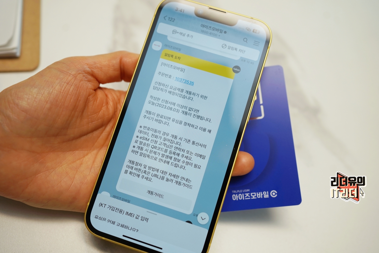 아이즈모바일 가입 신청이 되니 카카오톡으로도 알림이 왔습니다. 유심은 1~2일 내로 온다고 하는데요. 저는 다음날 바로 왔습니다.