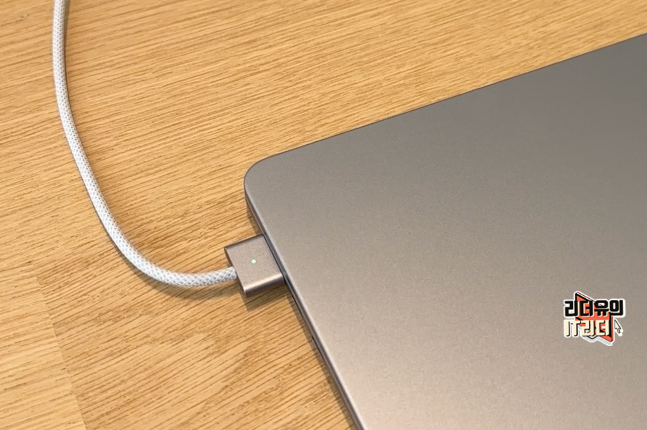 맥세이프 케이블 연결단자는 실버 색상이고 케이블도 화이트에 실버가 가미된 색상입니다.