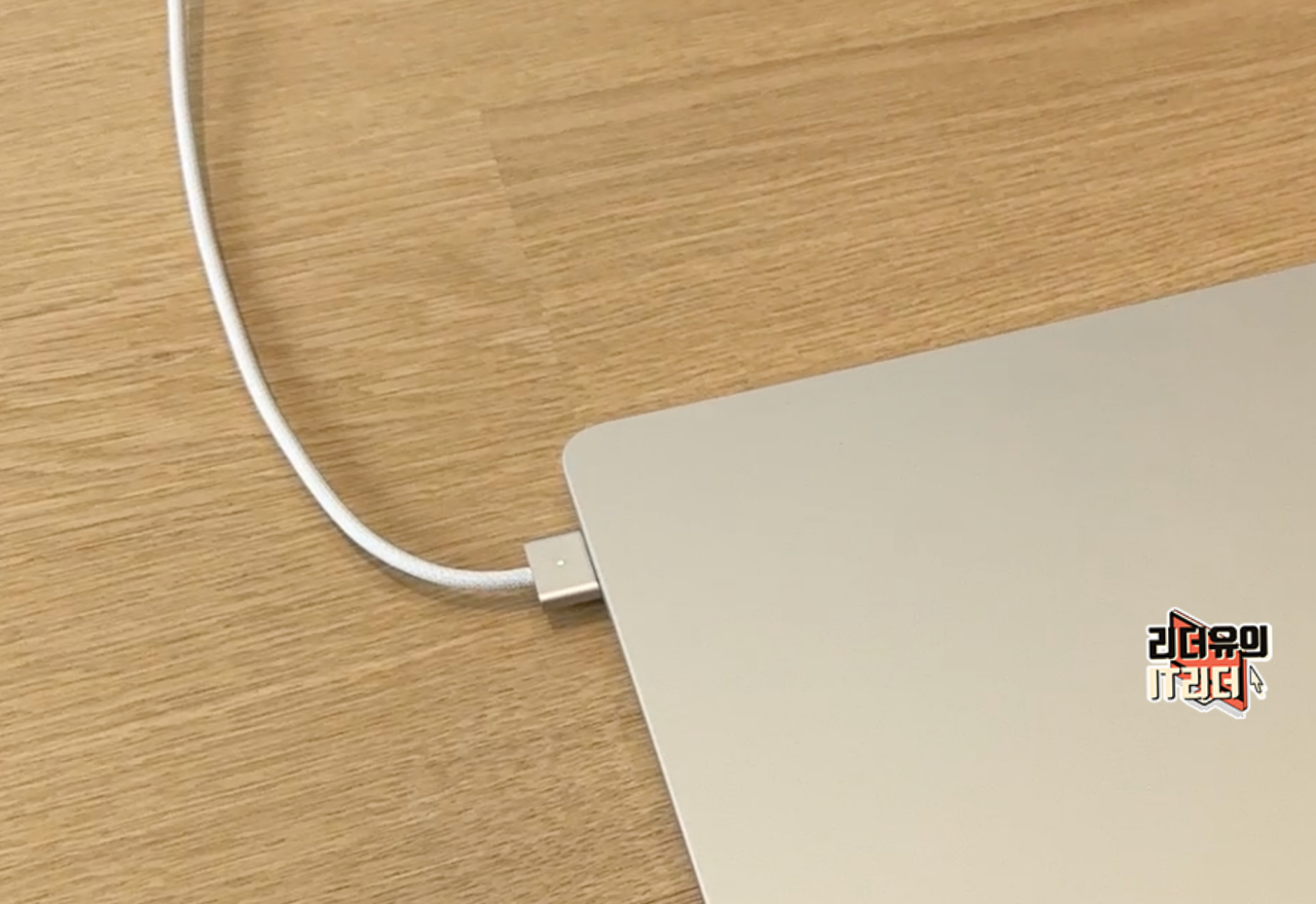 맥세이프 케이블도 단자는 스타라이트 색상이고 케이블은 약간은 골드빛이 들어간 케이블입니다.